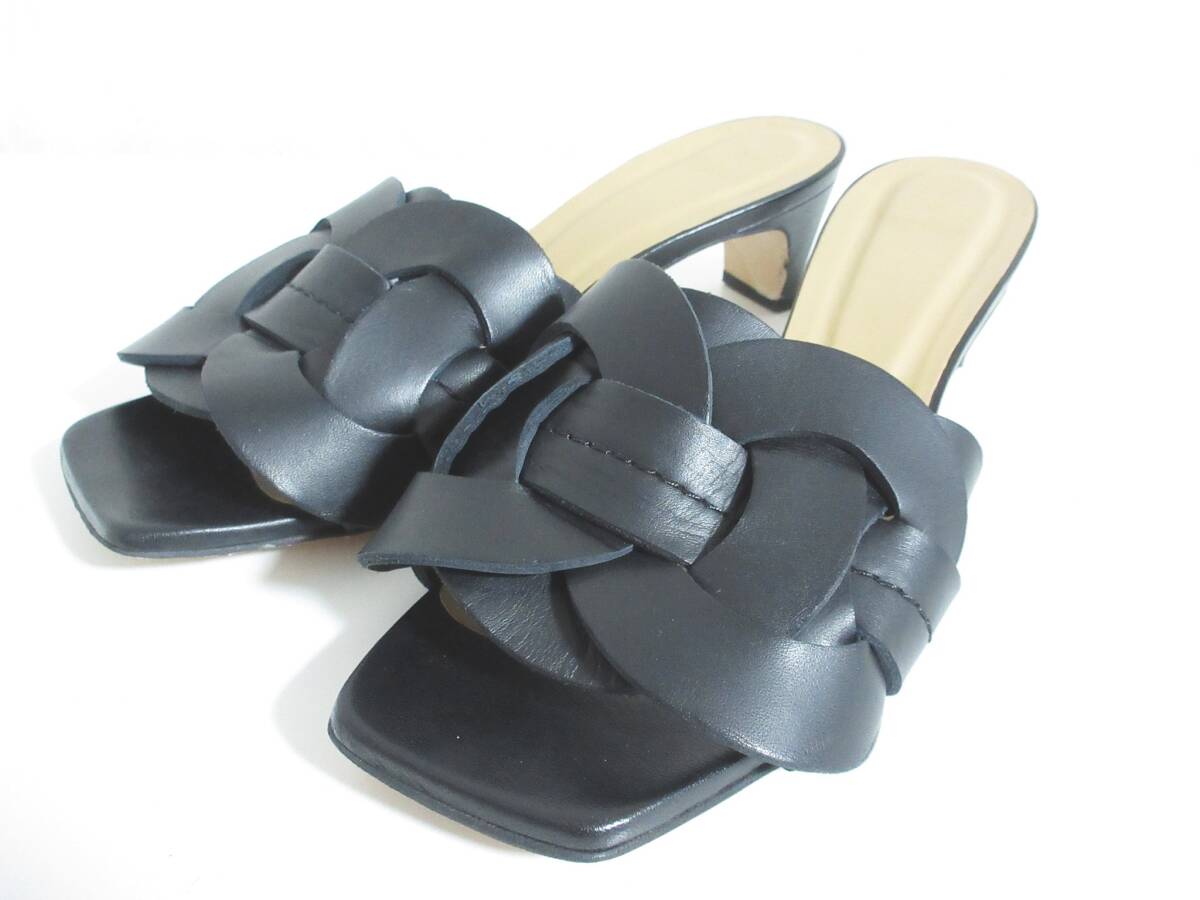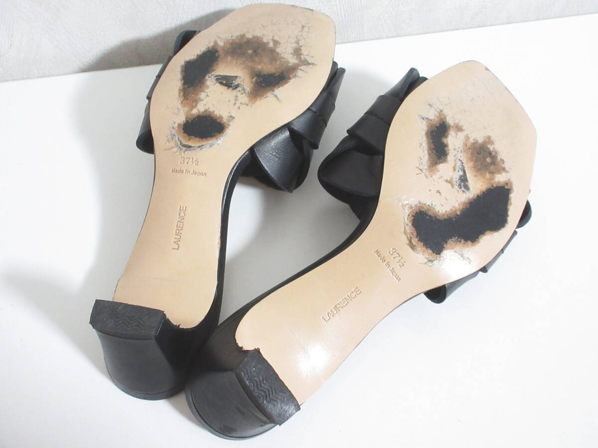 ロランス LAURENCE レザー サンダル 37 1/2 黒 ブラック 北7450