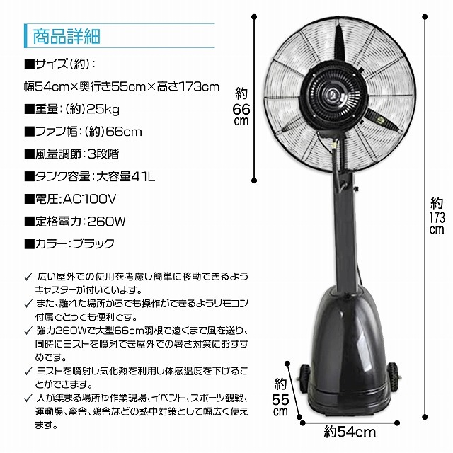業務用 大型ミストファン01 キャスター付き 41L 扇風機 冷風扇 首振り ミスト イベント 暑さ対策 熱中症対策 屋外 工場