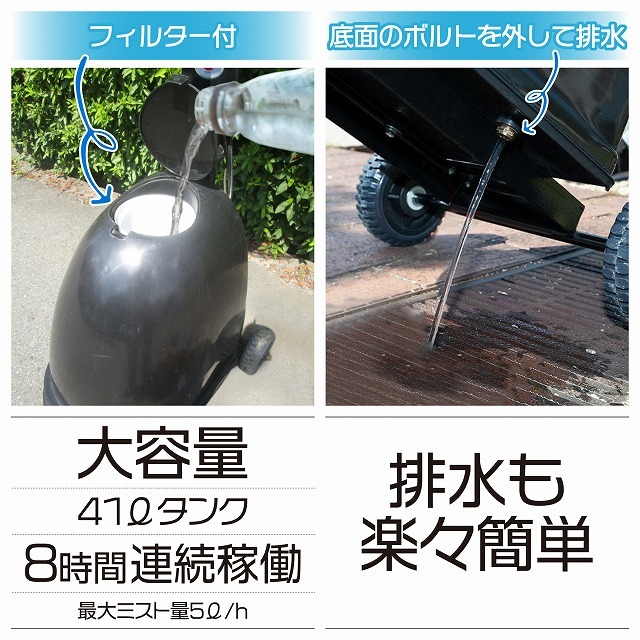 ■ 強力260W/大容量41Lサイズのタンク搭載型業務用ミスト扇風機です。