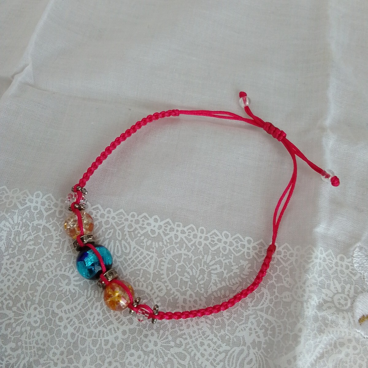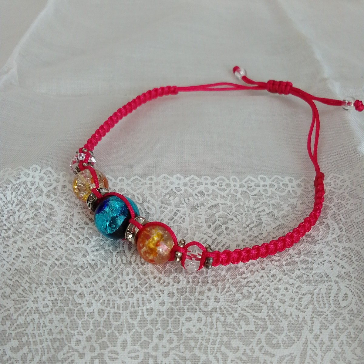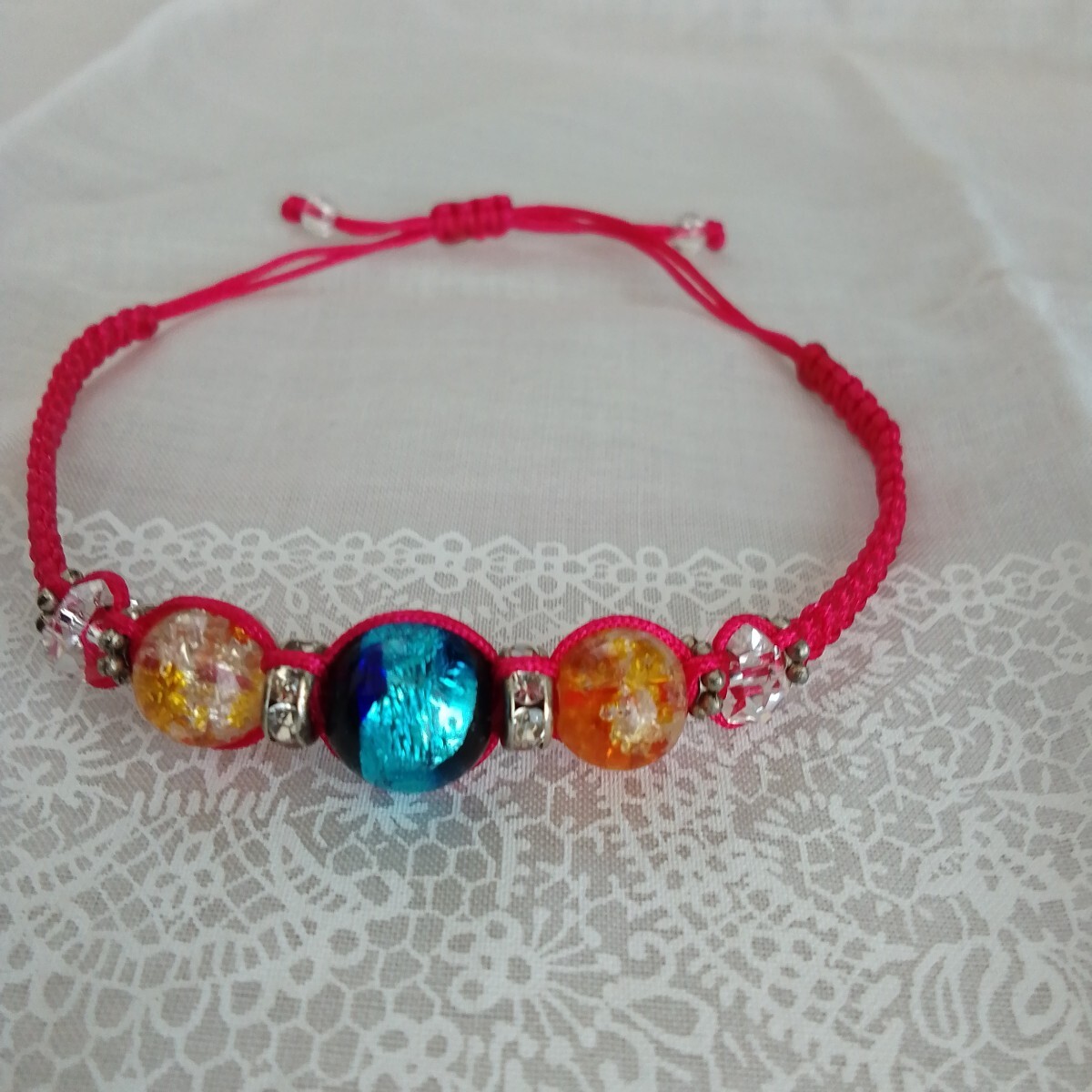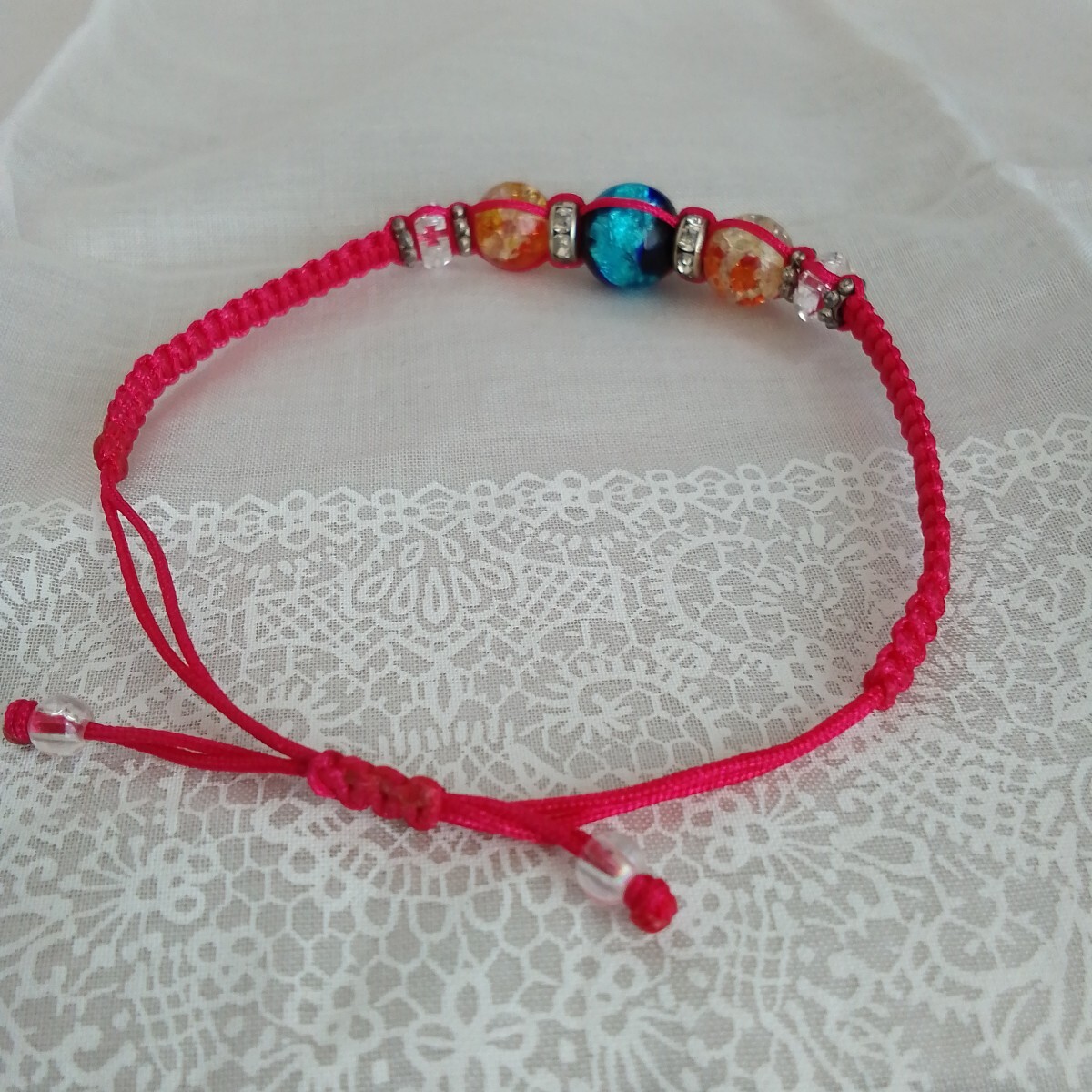 中心の青いビーズが直径約1cmくらい、その隣が直径約8mmくらいです。