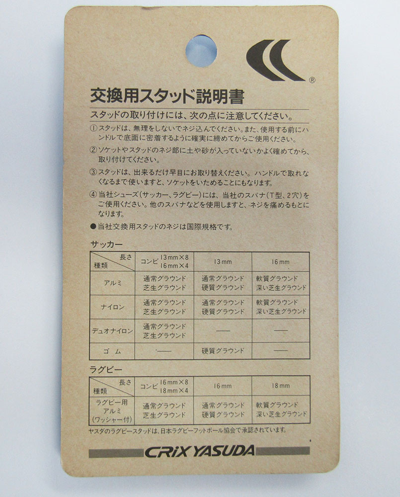 CRIX YASUDA 6242 ラグビー アクセサリー 国際規格交換用スタッド ソケット めねじ 12mm×12ケ入