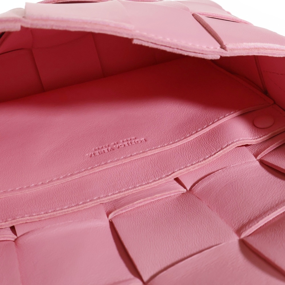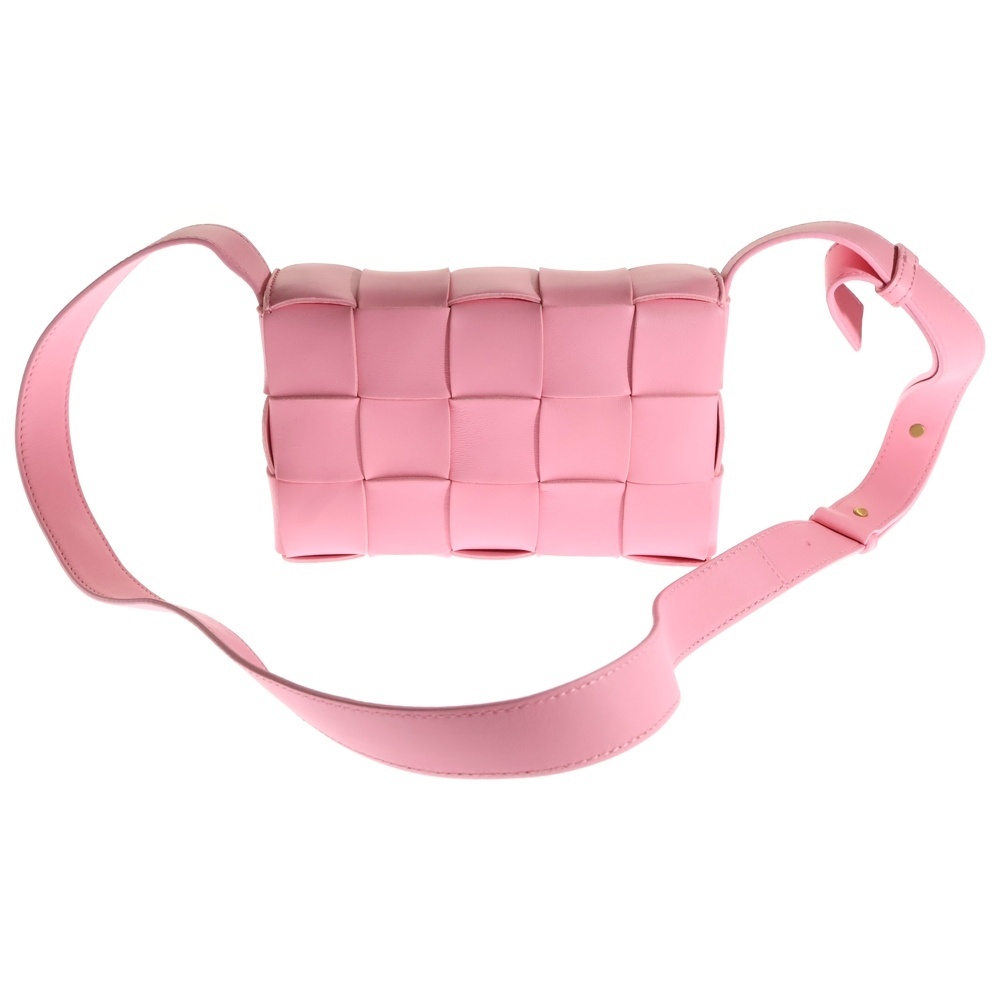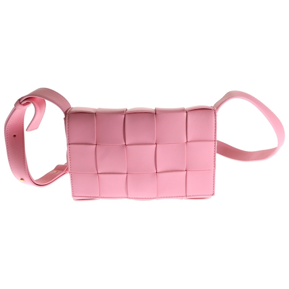 ボッテガヴェネタ スモール カセット マキシイントレチャート ラムスキン レザー ショルダーバッグ クロスボディーバッグ ピンク 730848