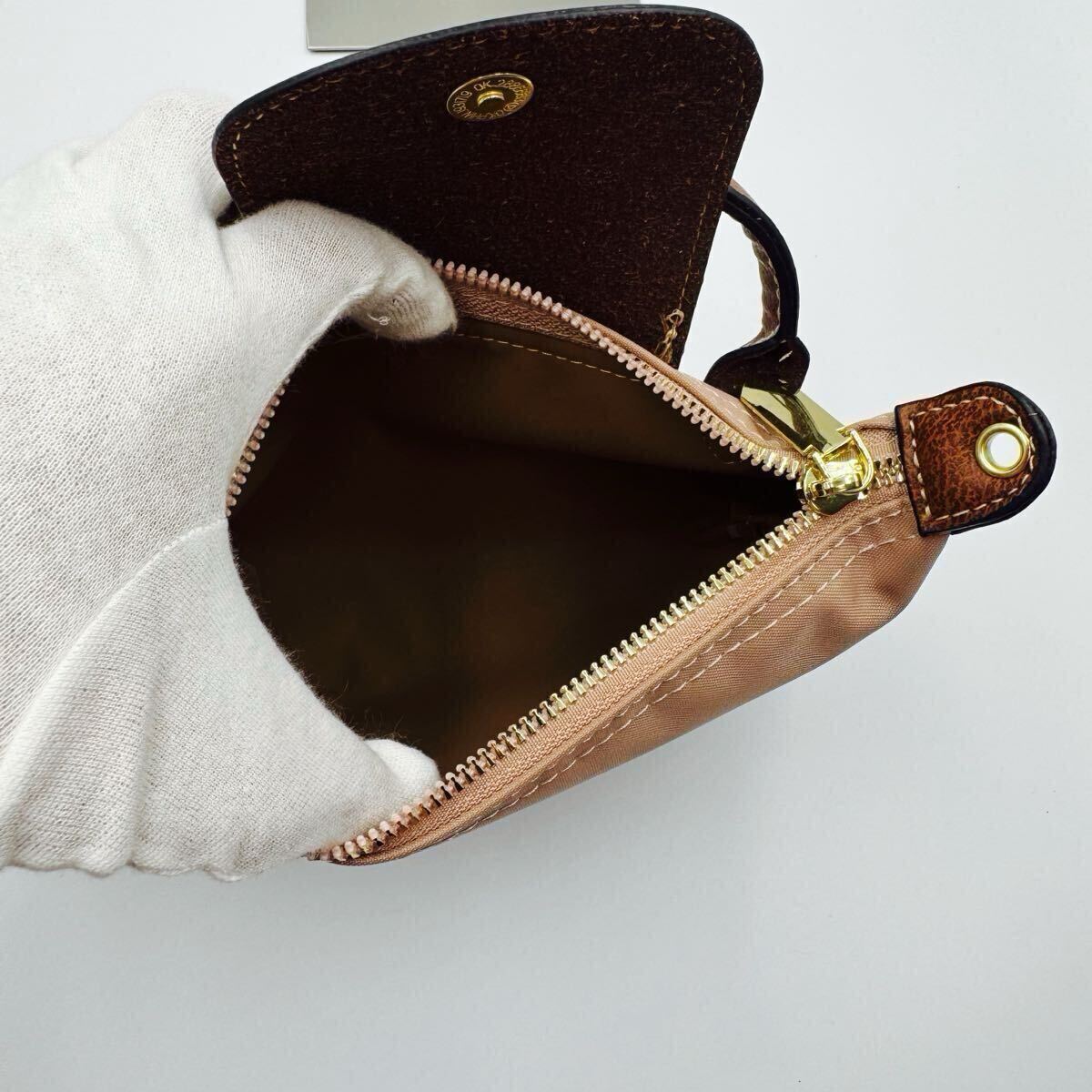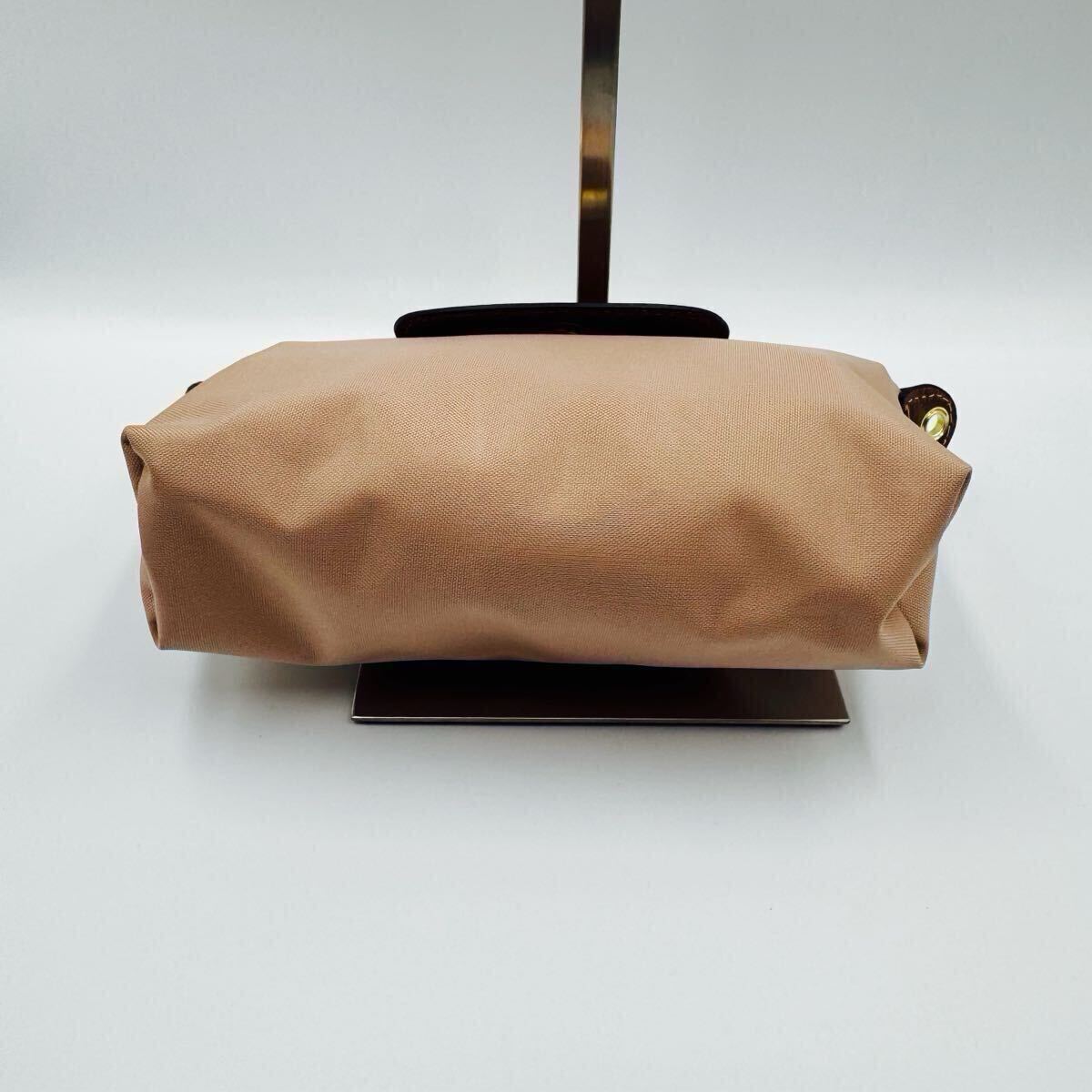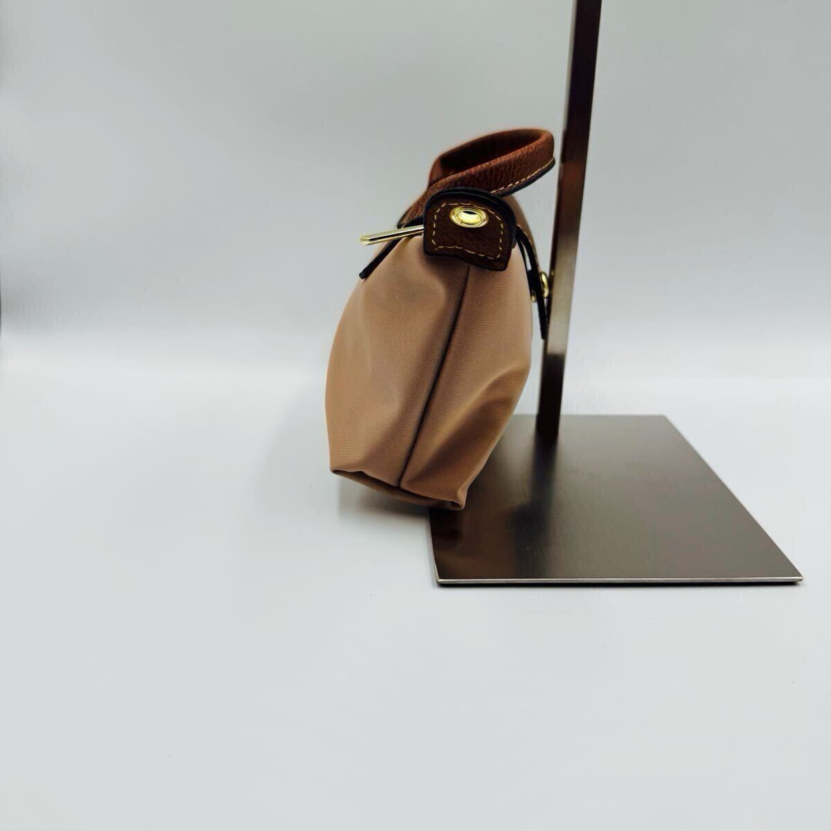 ブラウンのナイロン素材とフェイクレザーの切り替えが上品な、2WAY仕様のミニショルダーバッグです。