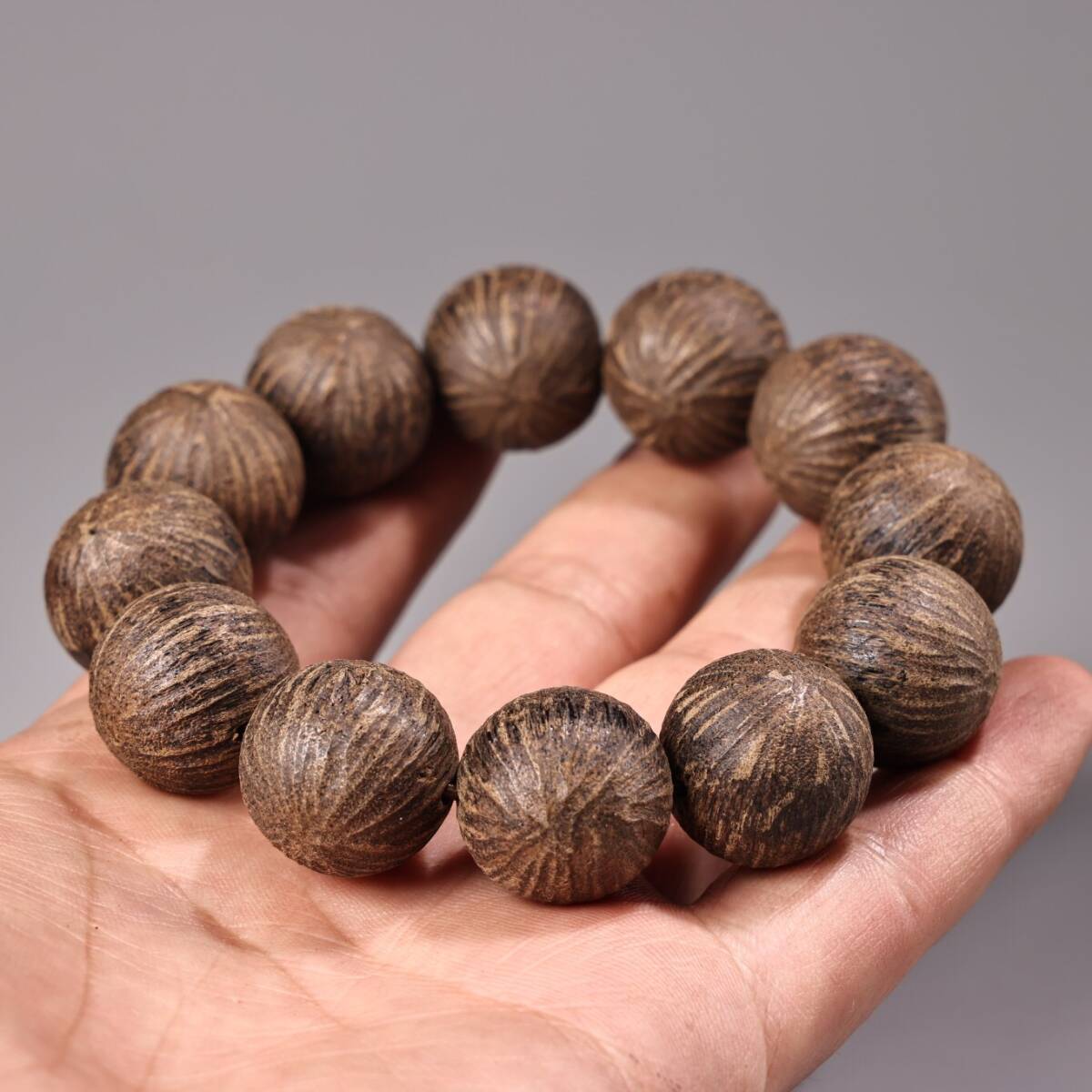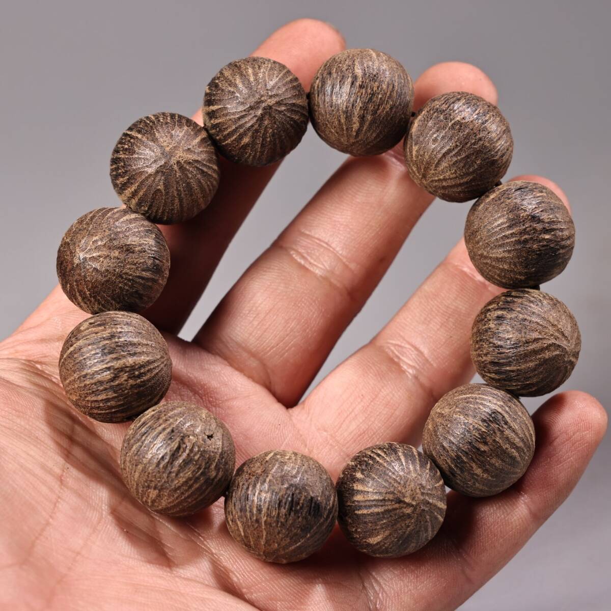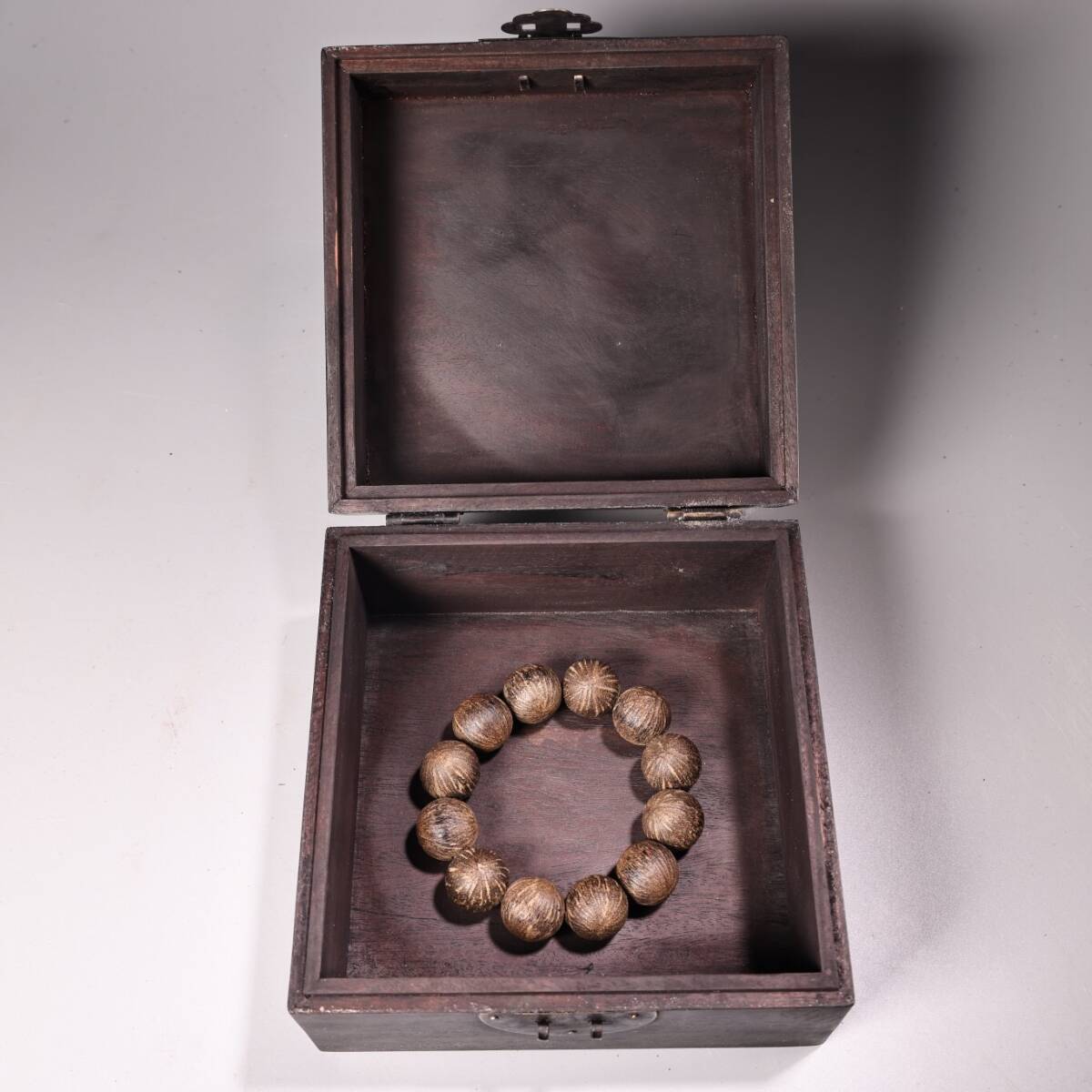 ▽鴻▽ 沈む香木製 細密彫 手串 箱付 根付 裝身具 古賞物 古董品 時代物 稀少珍品 中国古玩 中国古美術