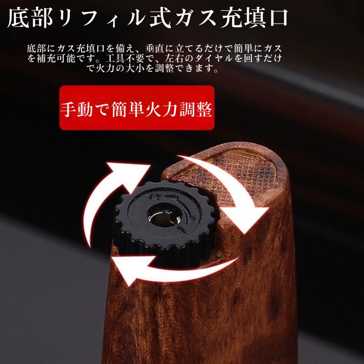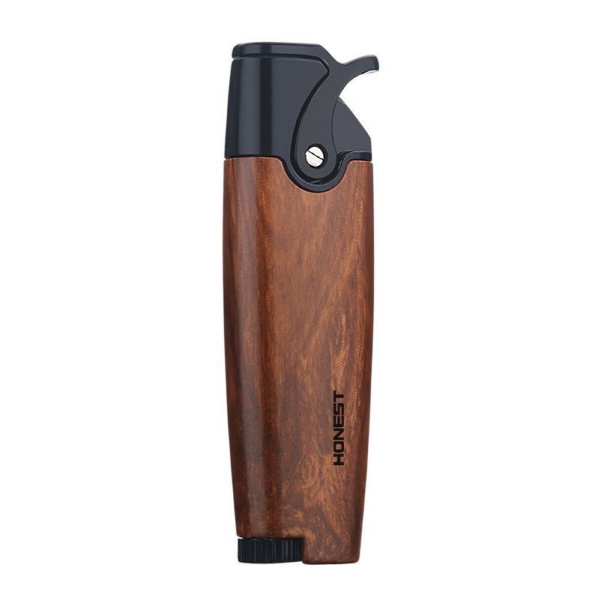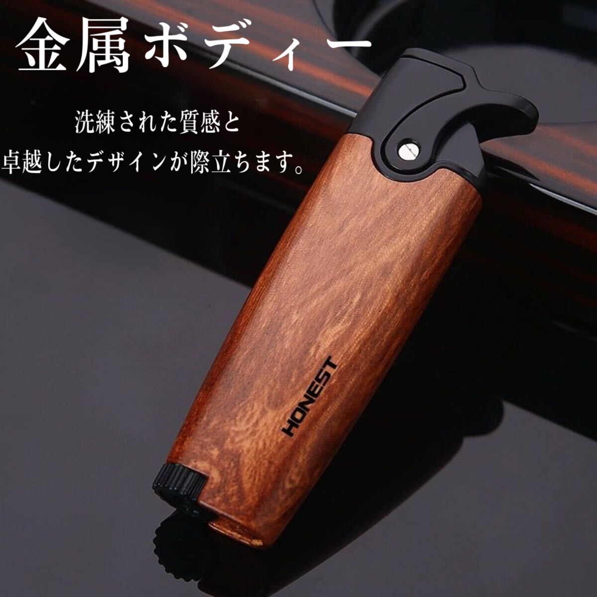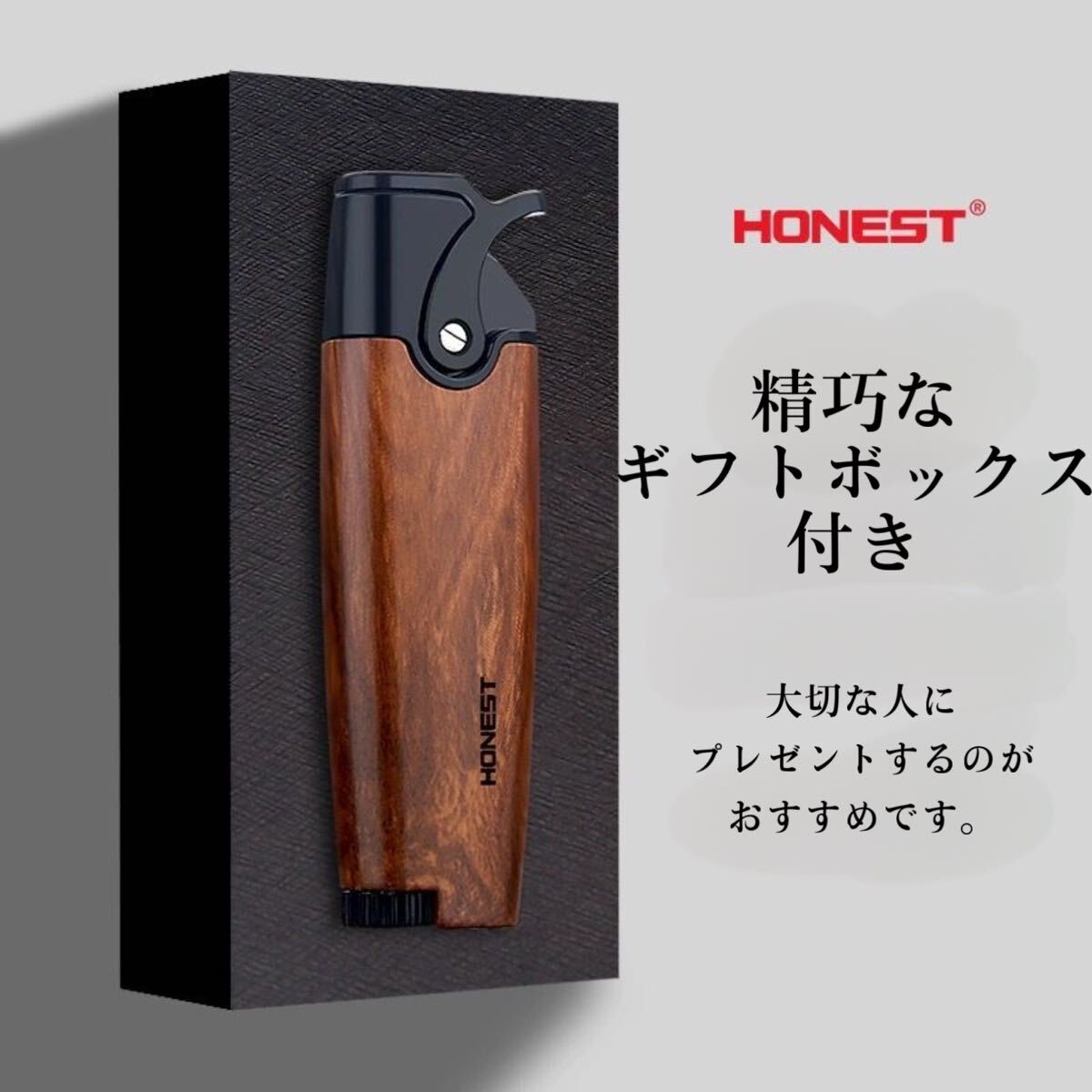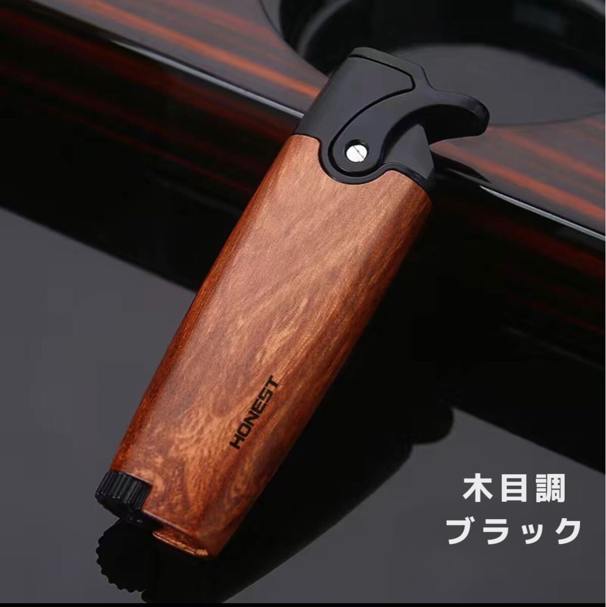 喫煙具喫煙グッズ全金属製HONEST強力直射青炎ガスライターターボライター葉巻ライター木目調黒