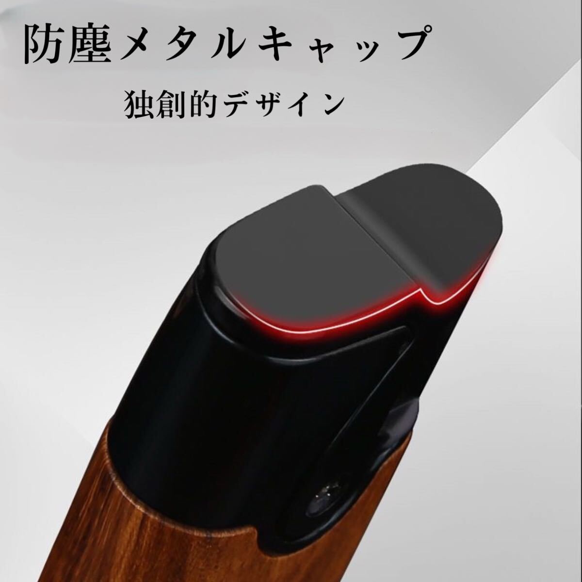 高級感あるウッド調デザイン:全金属製のボディに木目調の仕上げで、手にしっくりと馴染む上質な触り心地です。
