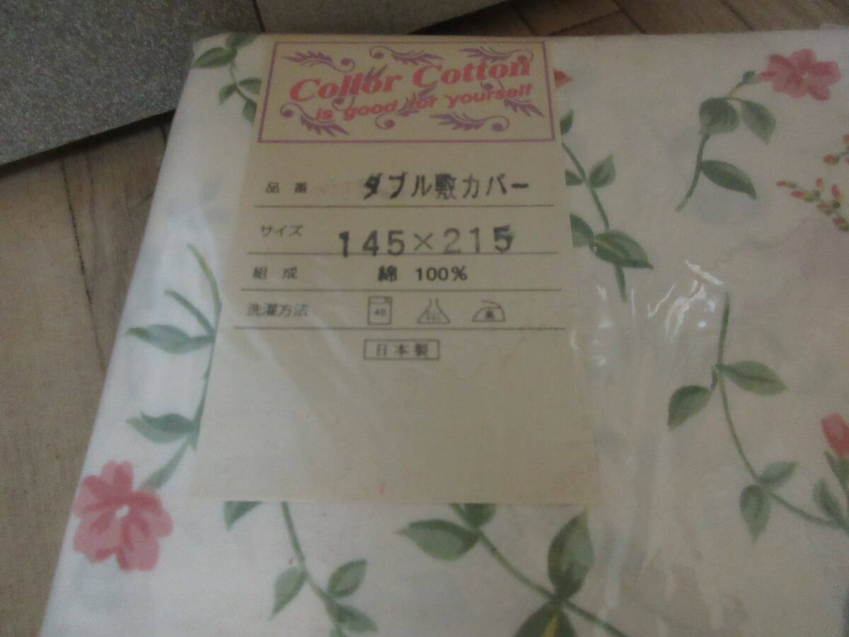 フラットシーツ 54インチ×76インチ、ダブル敷カバー 145㎝×215㎝。80サイズでお送り予定です。