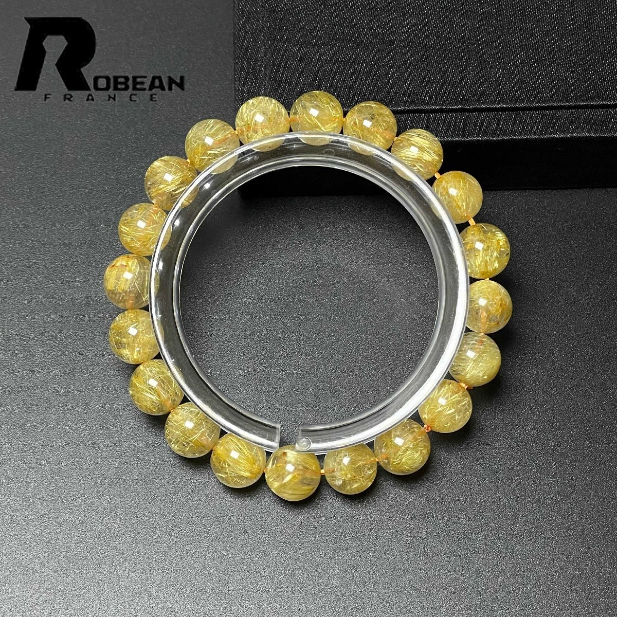 逸品 EU製 定価24万円★ROBEAN・極!極満針ルチルクォーツ★ブレスレット パワーストーン 天然石 綺麗 金運 お守り 9.3-9.9mm M0722879