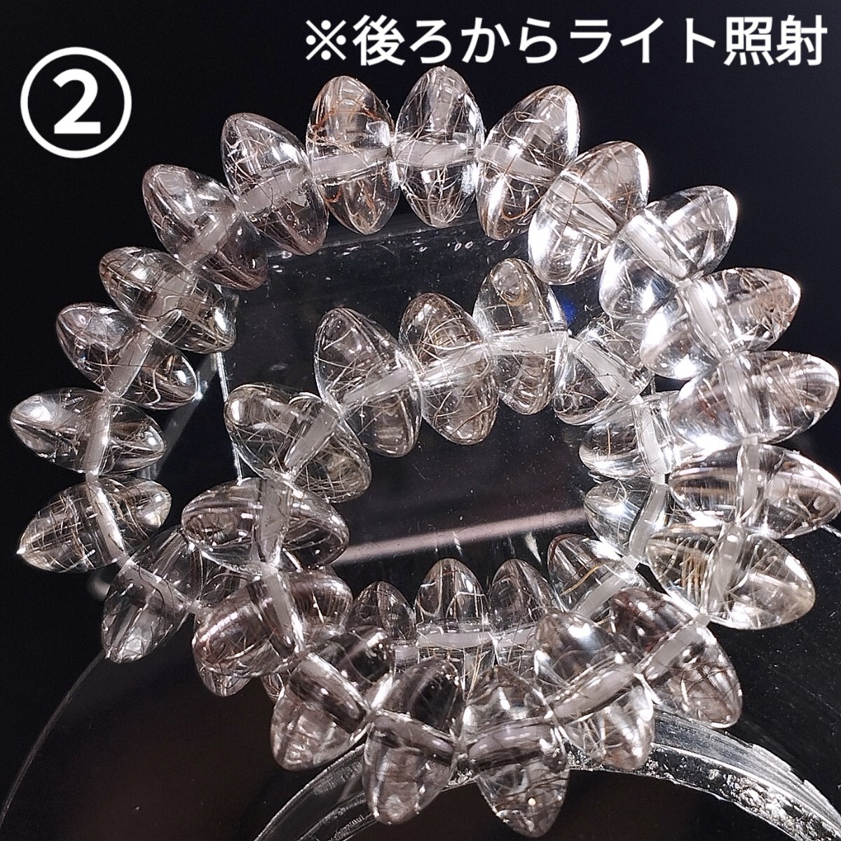 パッと見はボタンカットの光の内部反射もあり、ルチルの針は見えずらいです。
