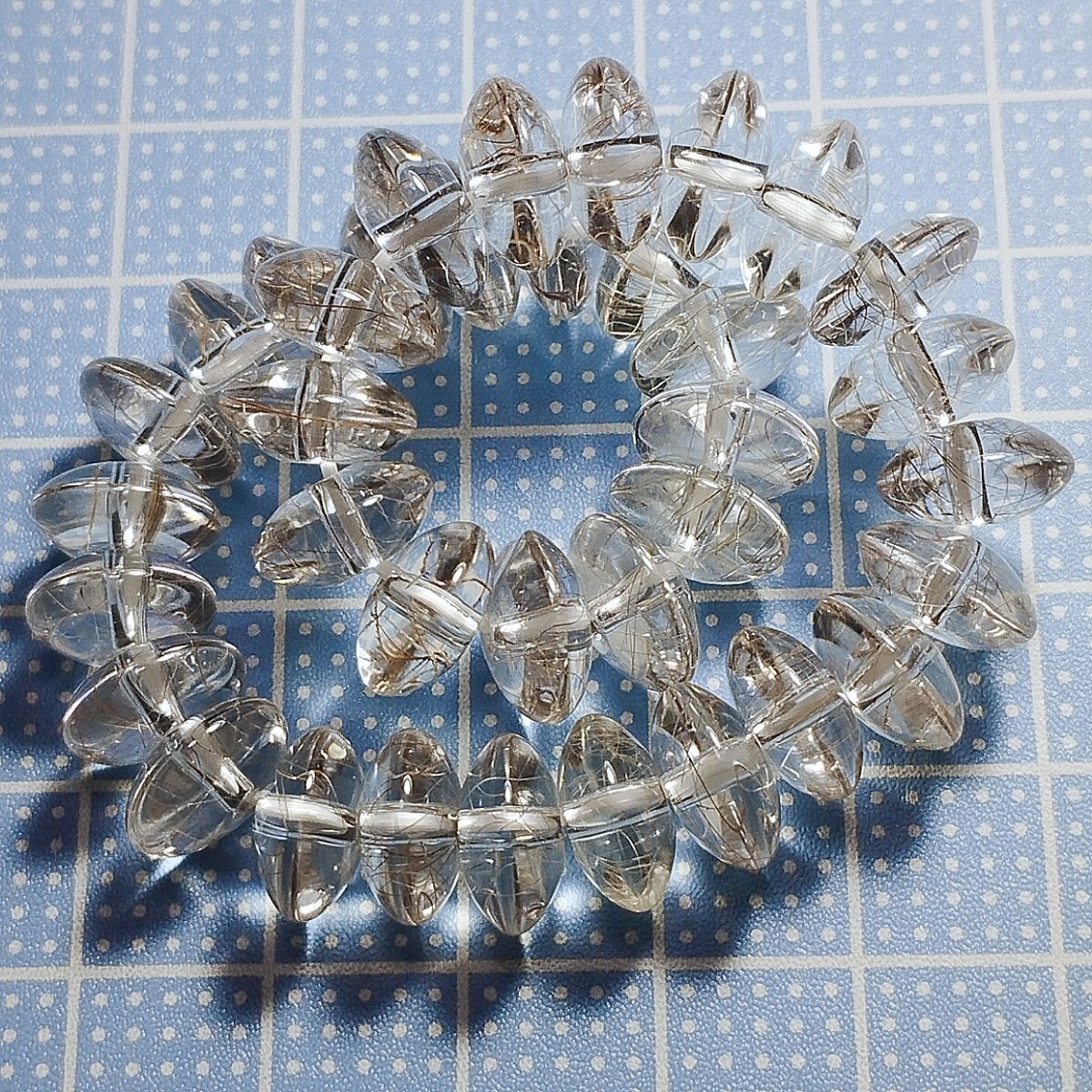 ルチルクォーツのボタンカットのブレスレットです。