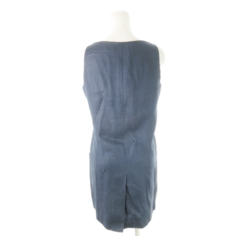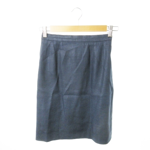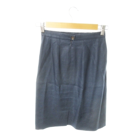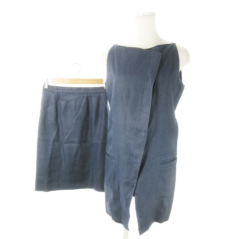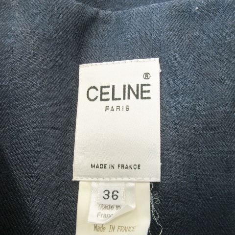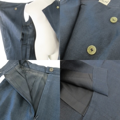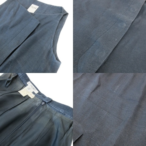 セリーヌ ヴィンテージ セットアップ 2点セット ロングベスト フロントボタン タイトスカート ひざ丈 ストライプ リネン 絹 36 S 青