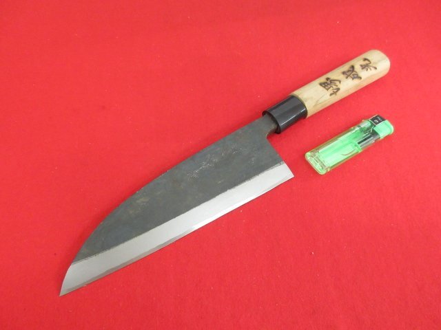 P869■堺成光 極上 / 左勝手 出刃包丁 黒皮 / 180mm / 全長330mm /// 左利き 6寸 和包丁 打刃物 / 美品