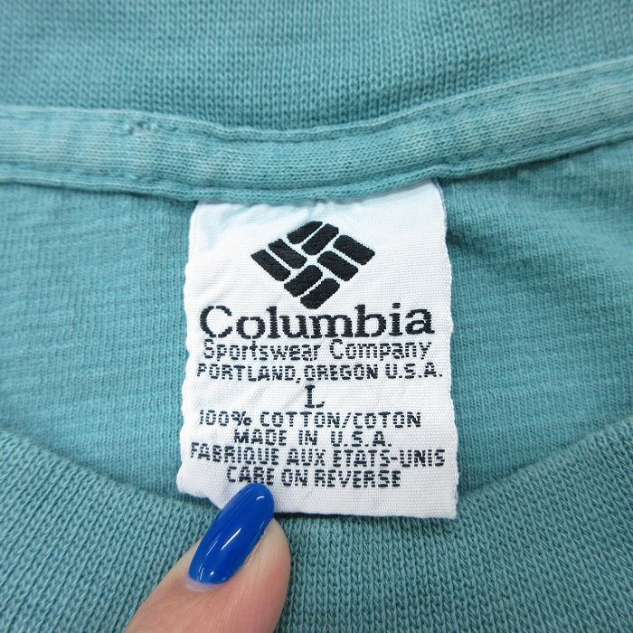 【商品名】 XL★古着 コロンビア 半袖 ビンテージ Tシャツ メンズ 90年代 90s 無地 コットン クルーネック USA製 青緑系