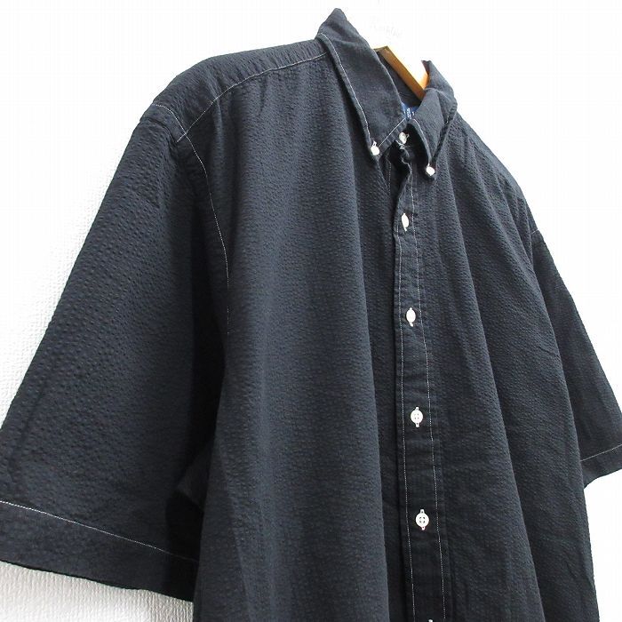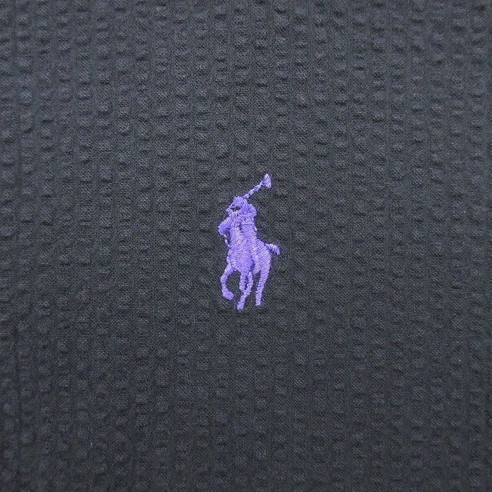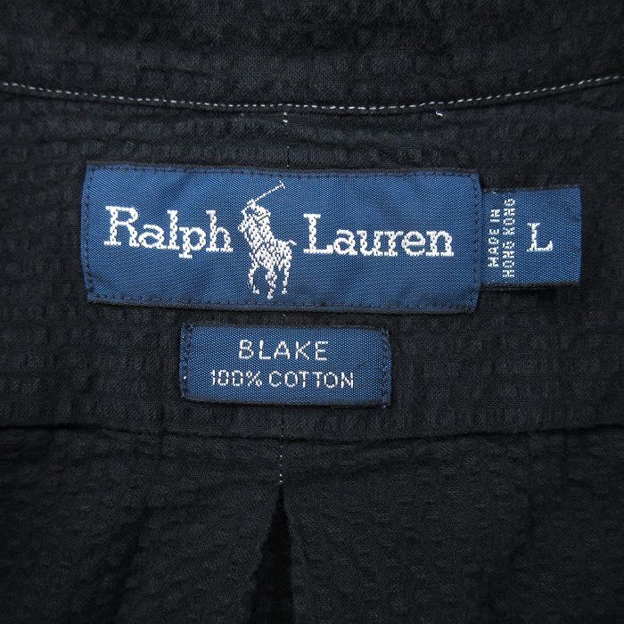【商品名】 XL★古着 ラルフローレン 半袖 ブランド シャツ メンズ 90年代 90s ワンポイントロゴ BLAKE シアサッカー 大きいサイズ ロング丈 コットン ボタンダウン 黒【spe】