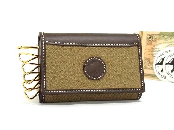 ■新品■未使用■ HUNTING WORLD ハンティングワールド キャンバス×レザー 6連 キーケース 鍵入れ カーキ系×ブラウン系 BN3969