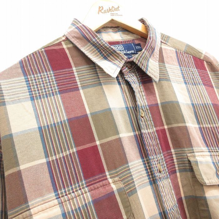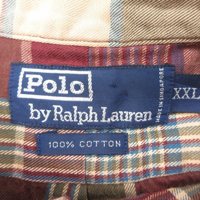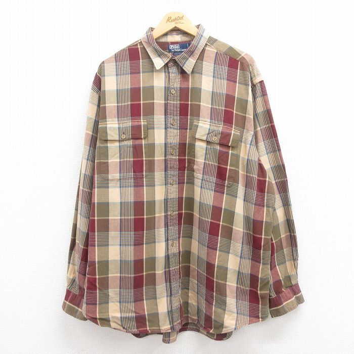 【商品名】 XL★古着 ラルフローレン 長袖 ブランド シャツ メンズ 90年代 90s 大きいサイズ コットン エンジ チェック
