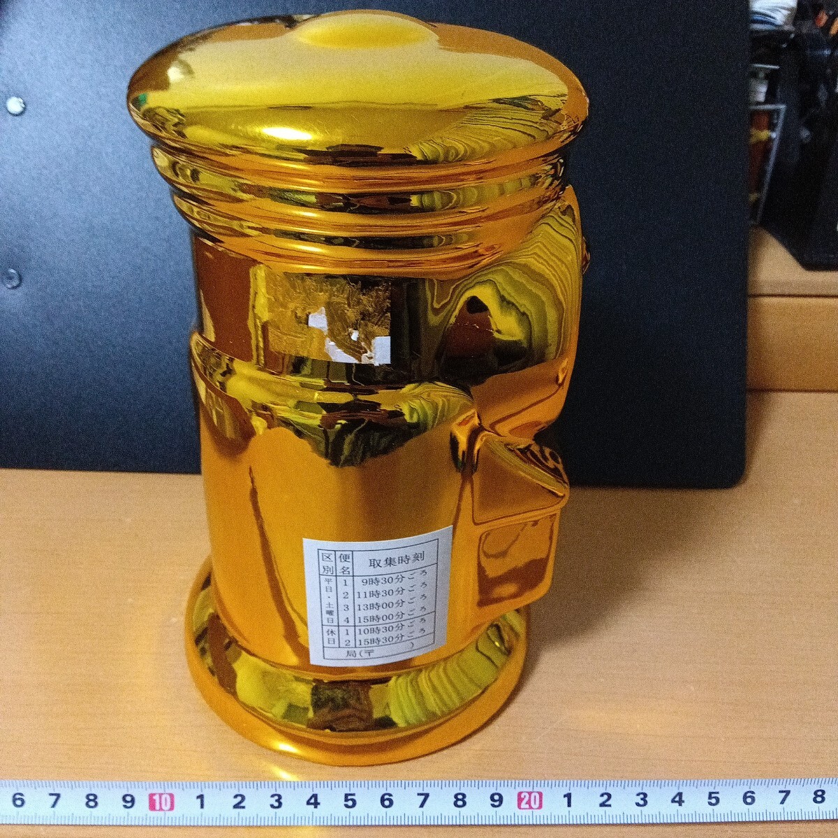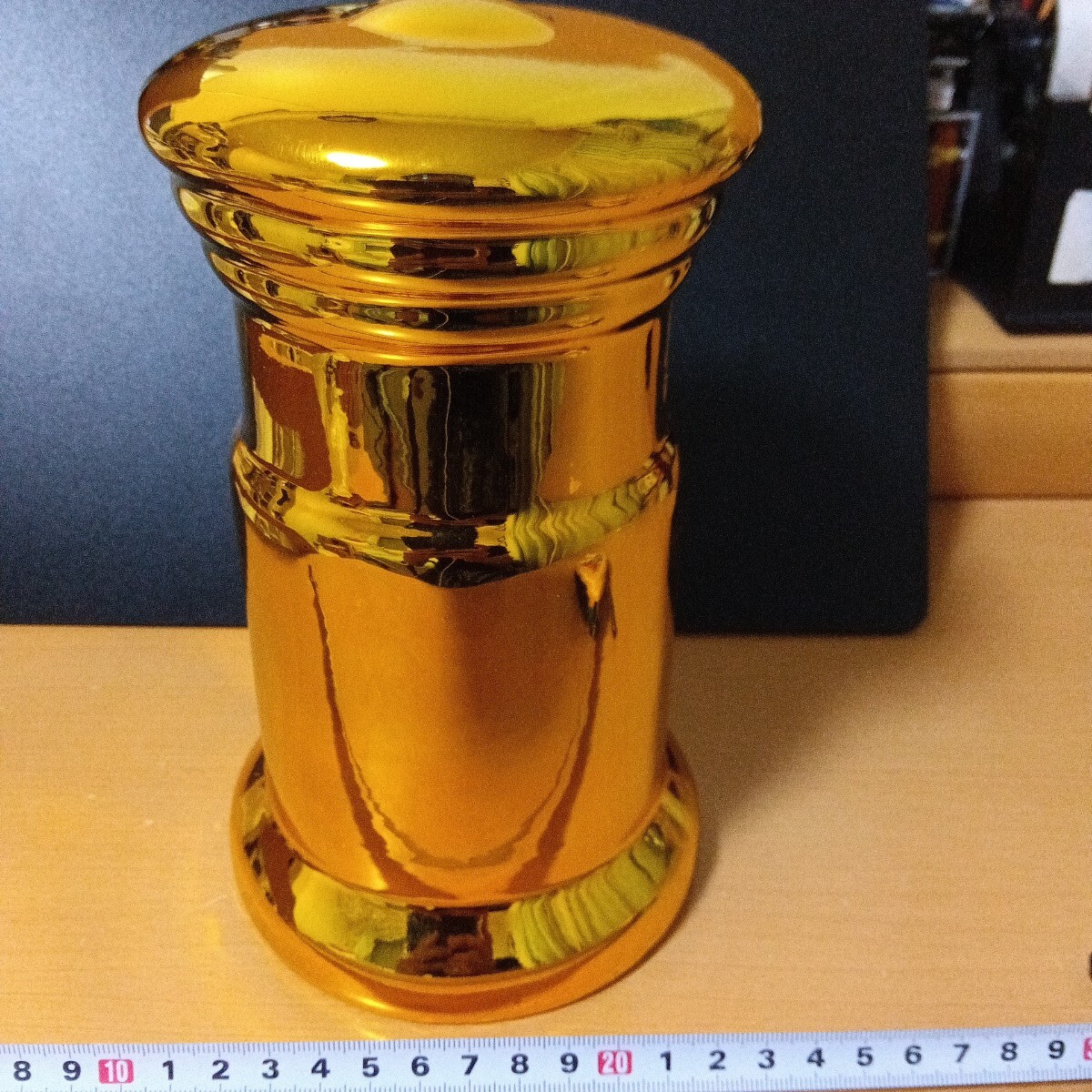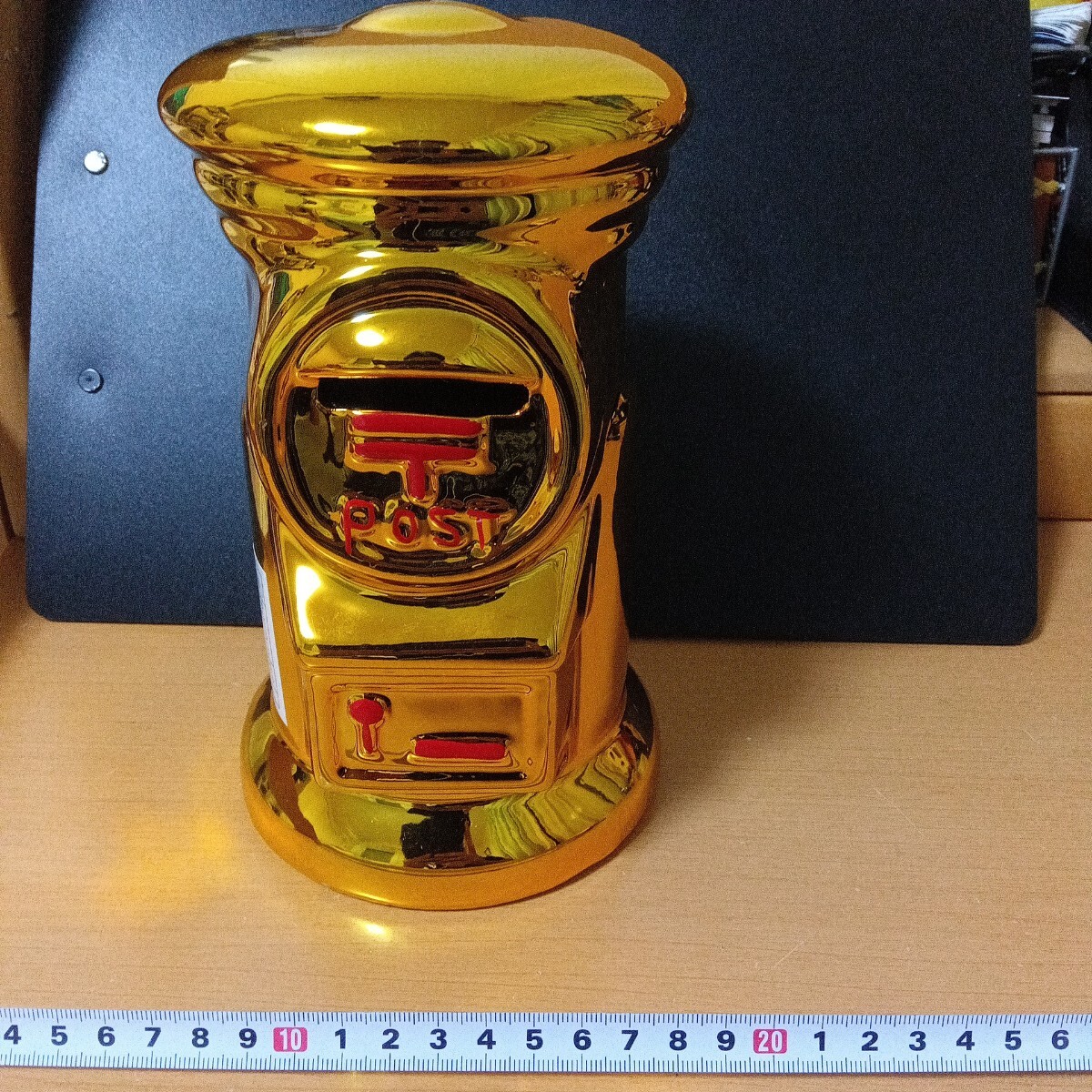 貯金箱 郵便ポスト 金色 ゴールド アンティーク 陶器製 インテリア ポスト型 郵便局 陶器 コレクション 開運幸運 招福