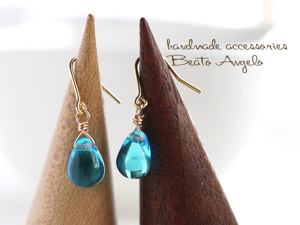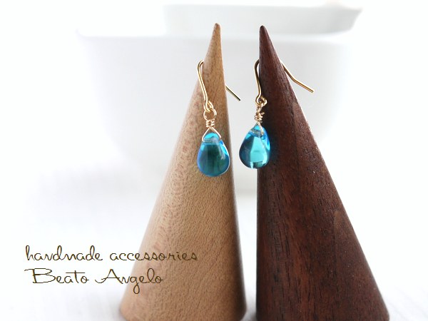 ◇◇+angelo+K14GF チェコドロップのプチピアス(p-279)アクアマリン 一粒 シンプル ライトブルー