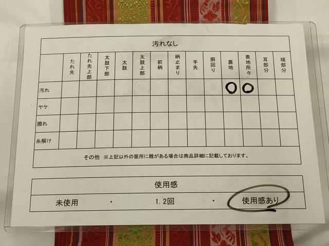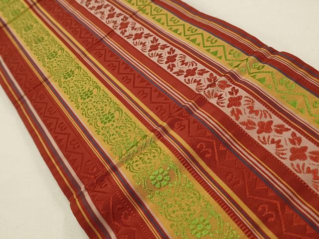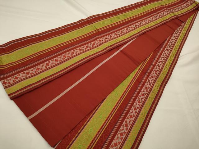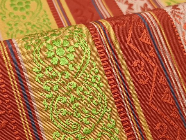 | 【正絹】 詳細に関しましては、画像をご確認ください。 本場筑前博多織は、 福岡県福岡市博多区やその周辺で生産される絹織物です。 仏具のひとつである独鈷、華皿を基にした幾何学模様が織られています。 江戸時代に筑前藩主だった黒田長政が幕府への献上品にしたことから、 博多献上、献上博多とも呼ばれます。 横畝が際立って見える経畝織りという織りになっています。 30〜60本の細い経糸を使うため、こしやはりがあり、 地合が硬く、光沢感があります。 きちんと締まり、くずれにくい、締めやすい帯といわれています。 大変上質な逸品になります。 お安く出品致しますので、是非この機会にいかがでしょうか?
