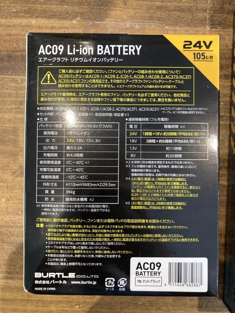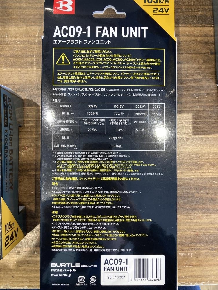 バートル ■商品名 ファン&バッテリー ■型番 AC09 マッドブラック+AC09-1 ブラック |