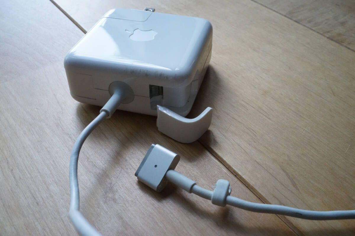 ACアダプタの爪がひとつ取れています。