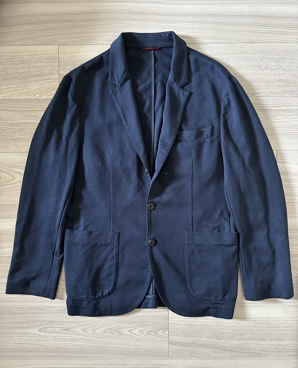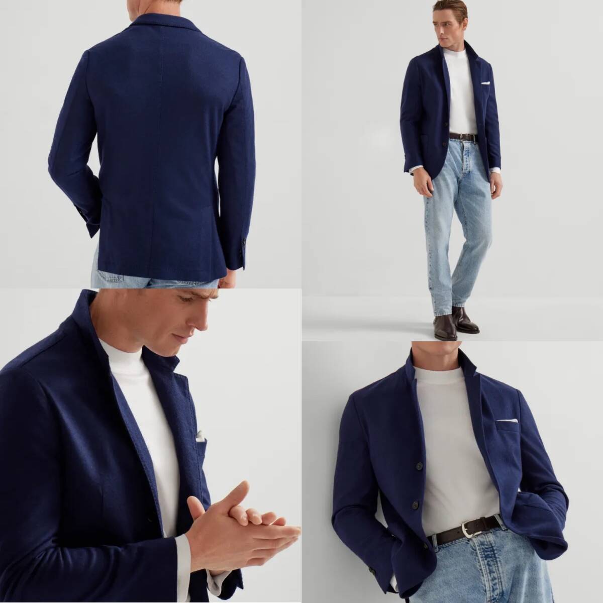 ブルネロクチネリならではの、男性の体格を引き立てるスタイリッシュなシルエットながらも、薄手の芯地を用いたアンコン仕立てと、ニットウェアからヒントを得て作られた、ソフトで軽やかな風合いのジャージー 生地で作られているため、まるでニットジャケットを着ているかのような、暖かく包み込まれるような着心地が味わえます。