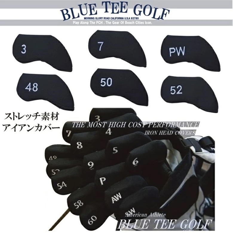 ■【50度】ブルーティーゴルフ ストレッチ素材 アイアン用ヘッドカバー単品販売 【BLUE TEE GOLF】