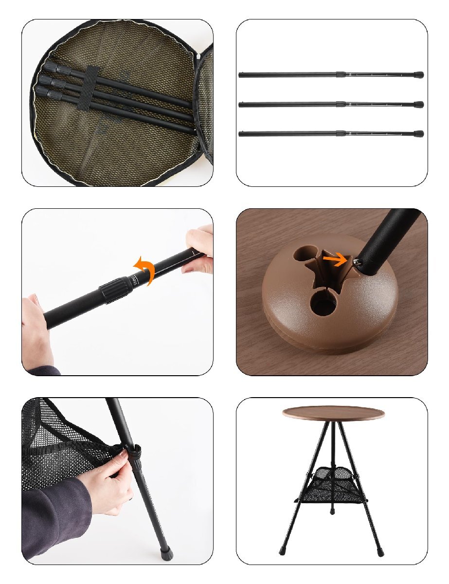 【楽々収納&持ち運び便利】折りたたみテーブルは三角形の小物収納専用グリッドバッグ付きて収納力も抜群!テーブルの上だけでなく下のグリッドバッグの中にも物を置くことができます。キャンプテーブルの専用収納ケースも付き、楽に持ち運びできます。持って帰る時にも、鞄や車を汚しません。
