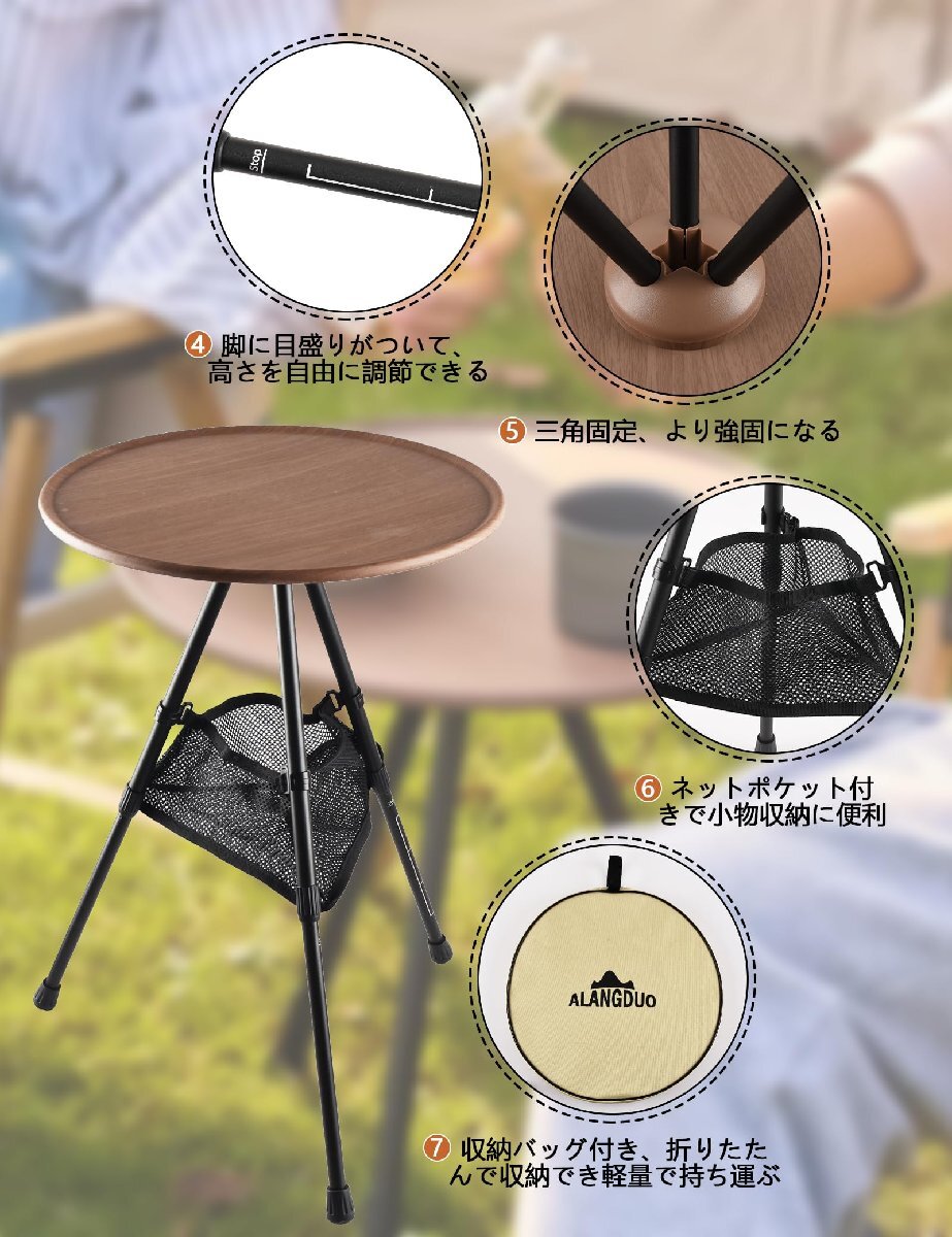 ブランド:ALANGDUOカラー:木目サイズ:M-XL【超軽量テーブル】アウトドアテーブルは丈夫で軽量なアルミを使用しているから、重量はわずか936g。女性や子供でも手軽に持ち運べます。キャンプテーブルの面がABSを採用した結果、水や汚れにも強く、アウトドアシーンでも安心して使えます。お手入れも楽々。