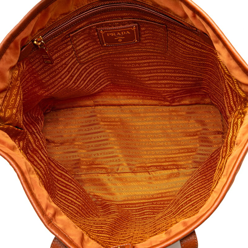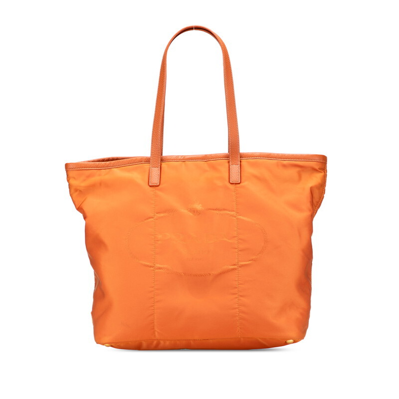 プラダ ロゴジャガード トートバッグ ハンドバッグ BR4634 オレンジ ナイロン レザー レディース PRADA 【中古】