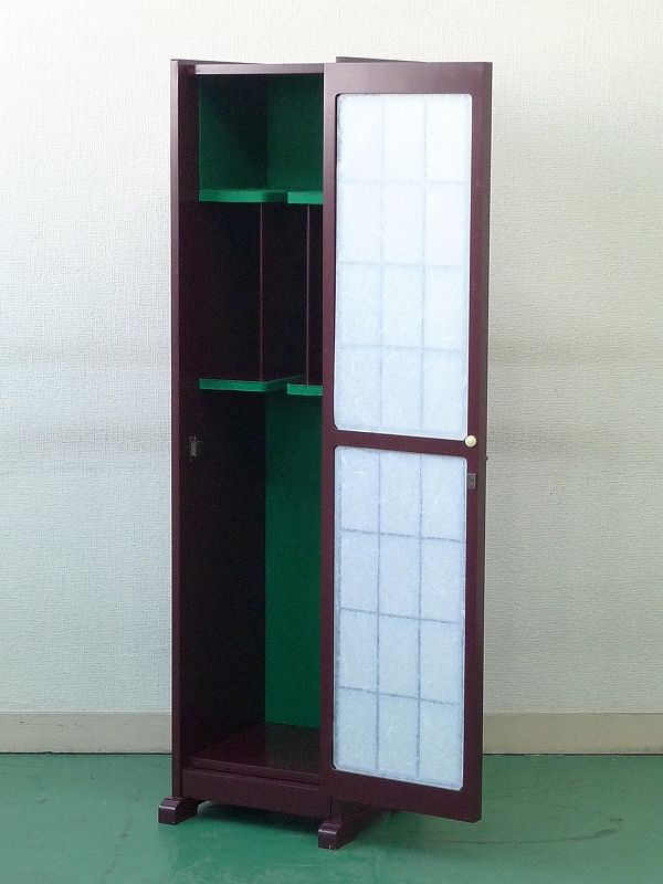 20AB927▲高さ120cm行燈風 木製 三味線収納ケース・スタンド掛け収納箱・家具型家具調