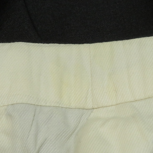 | コンディション備考 | ジャケット右袖口裏地に点シミ、パンツ裏地各所に薄いシミ、ジャケット裏地に前所有者様によるネーム刺繍がございます。着用時に見える箇所ではございません。多少の使用感がありますが、全体的には良好な状態になります。 |