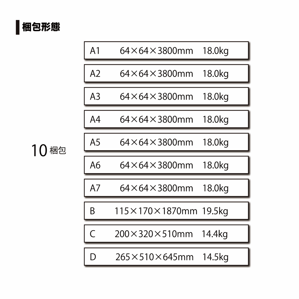 | 間口 | 入口巾 | 奥行 | 高さ | 入口高さ | パイプ径 |