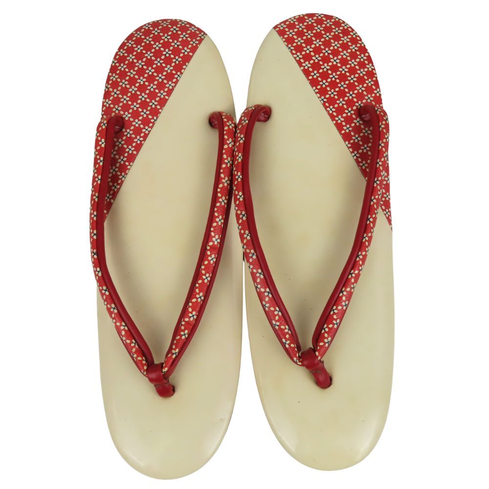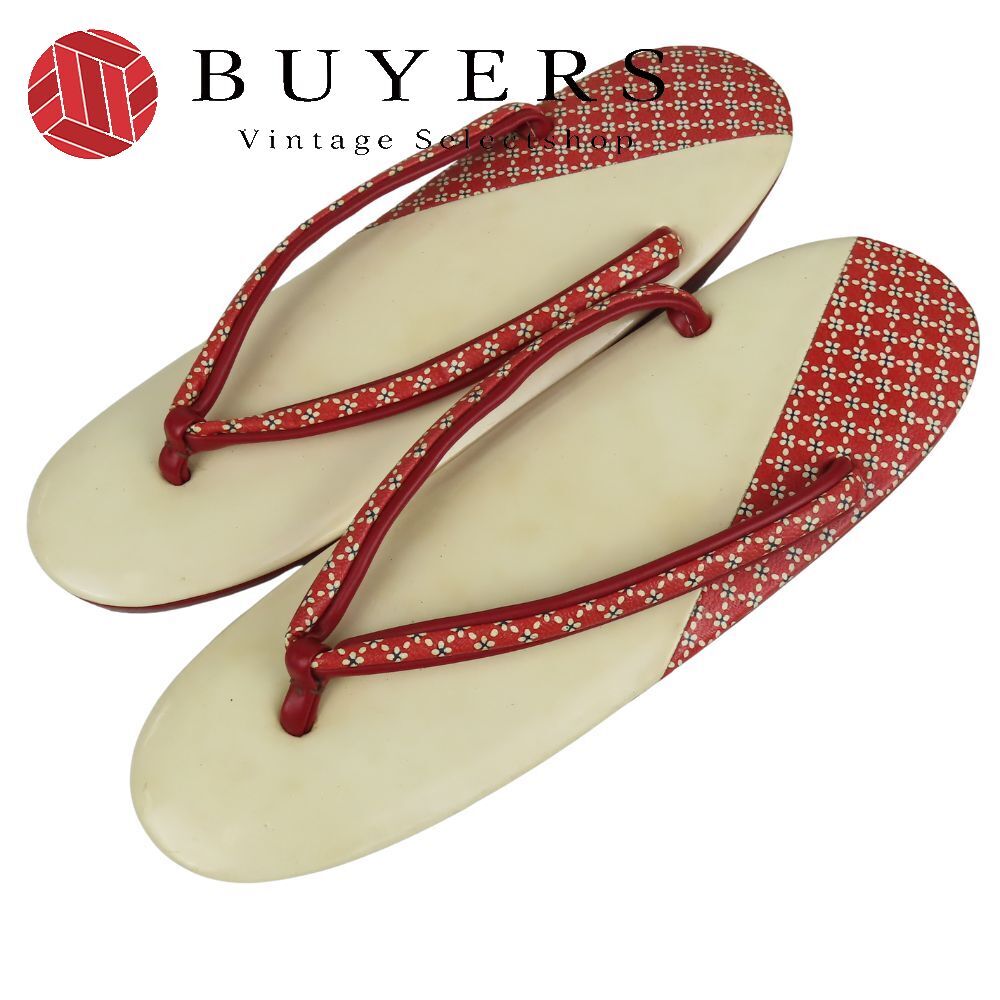 品名 【中古】 草履 合成皮革 ホワイト レッド 和柄 おしゃれ レディース 女性