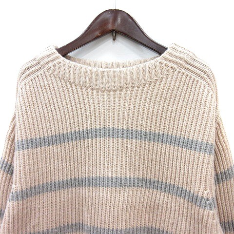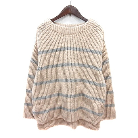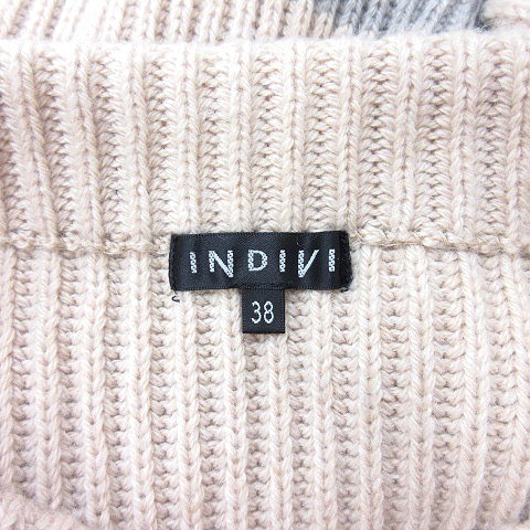 インディヴィ INDIVI ニット セーター ハイネック ボーダー 長袖 38 M ベージュ /MN レディース