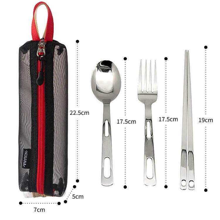 スプーン、フォーク、箸の3点セット ステンレス製 アウトドア キャンプ 旅行 錆びにくい 耐久性 登山 BBQなどに 専用ポーチ付 LP-HAS03S