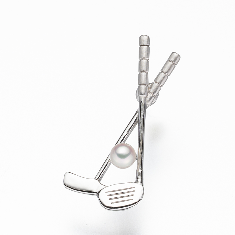 シルバー素材に3.5mmのアコヤパールをあしらった、ゴルフモチーフのピンブローチ。