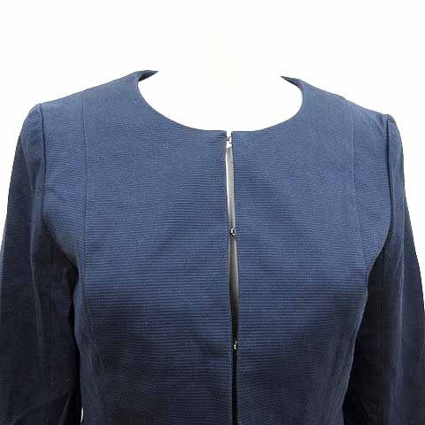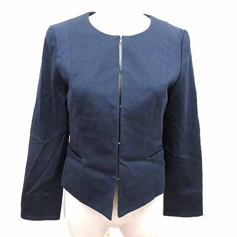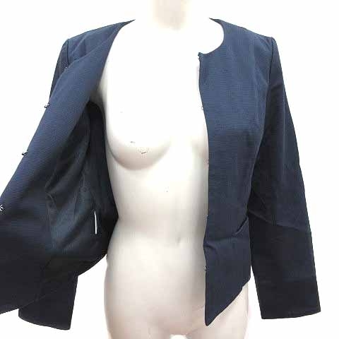 ローラアシュレイ LAURA ASHLEY ノーカラージャケット 7 S 紺 ネイビー /YK レディース