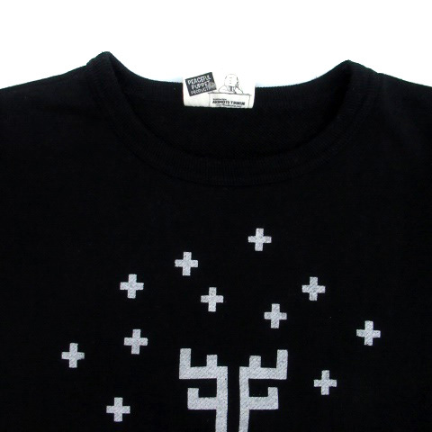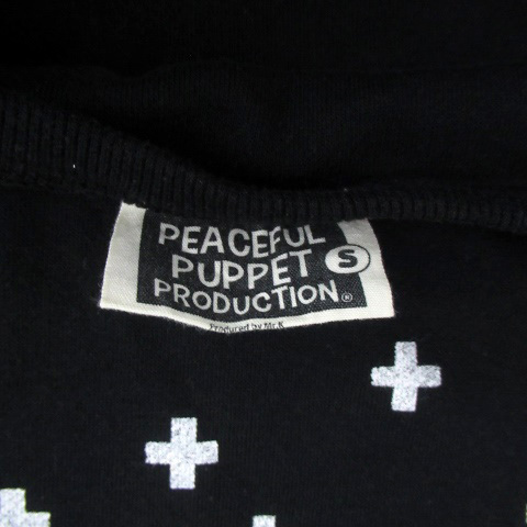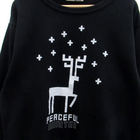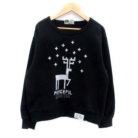ピースフルパペット peaceful puppet トレーナー ラウンドネック プリント S 黒 ブラック オフホワイト /HO2 レディース