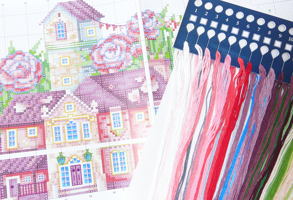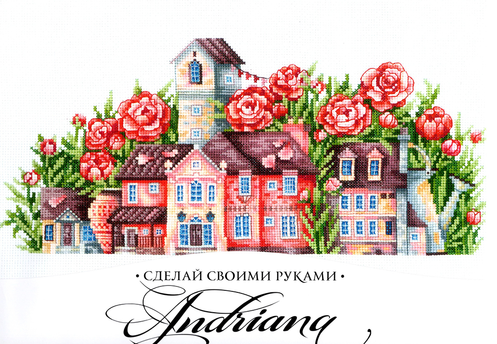 ピオニー(牡丹)が咲き乱れる可愛い街並みのクロスステッチキットです!