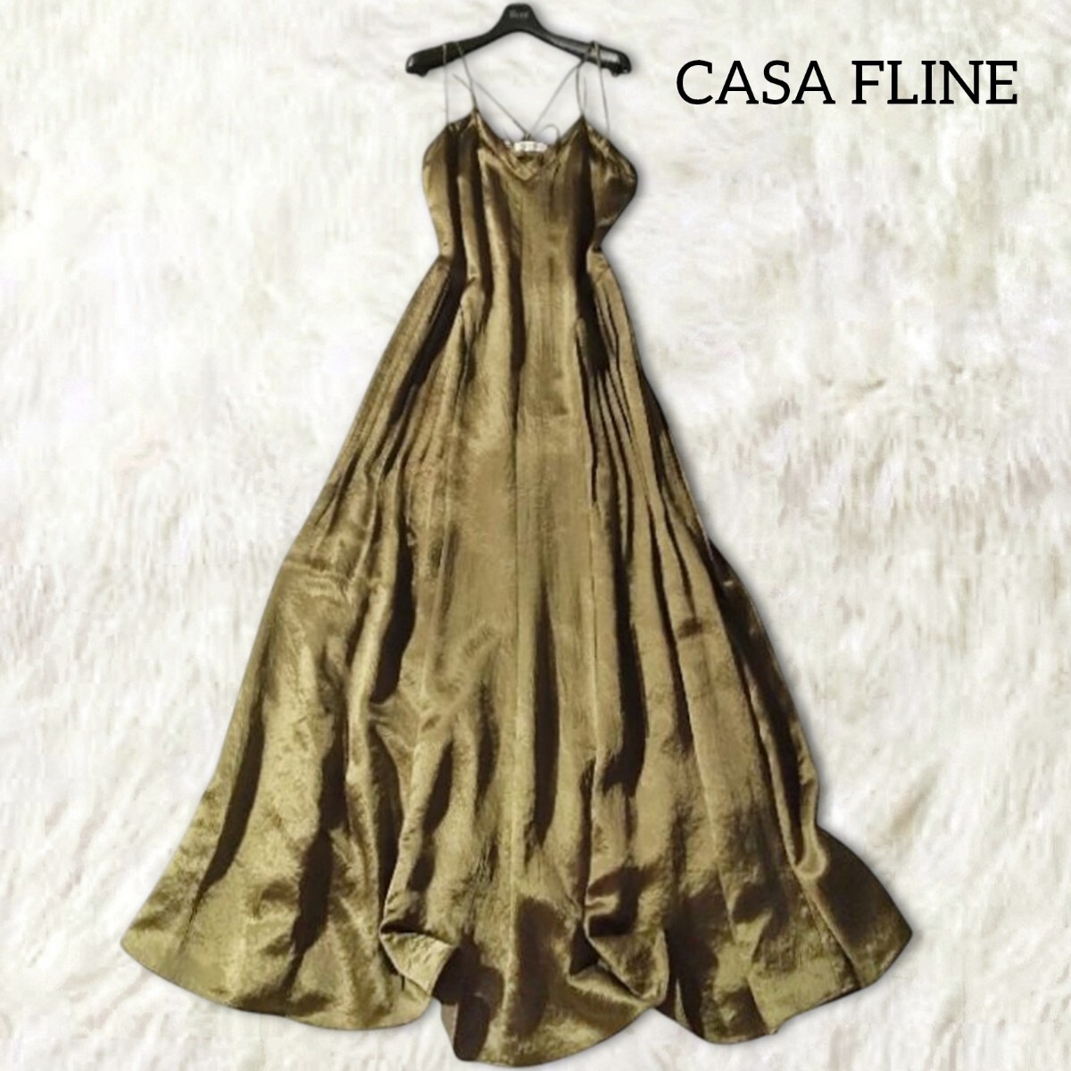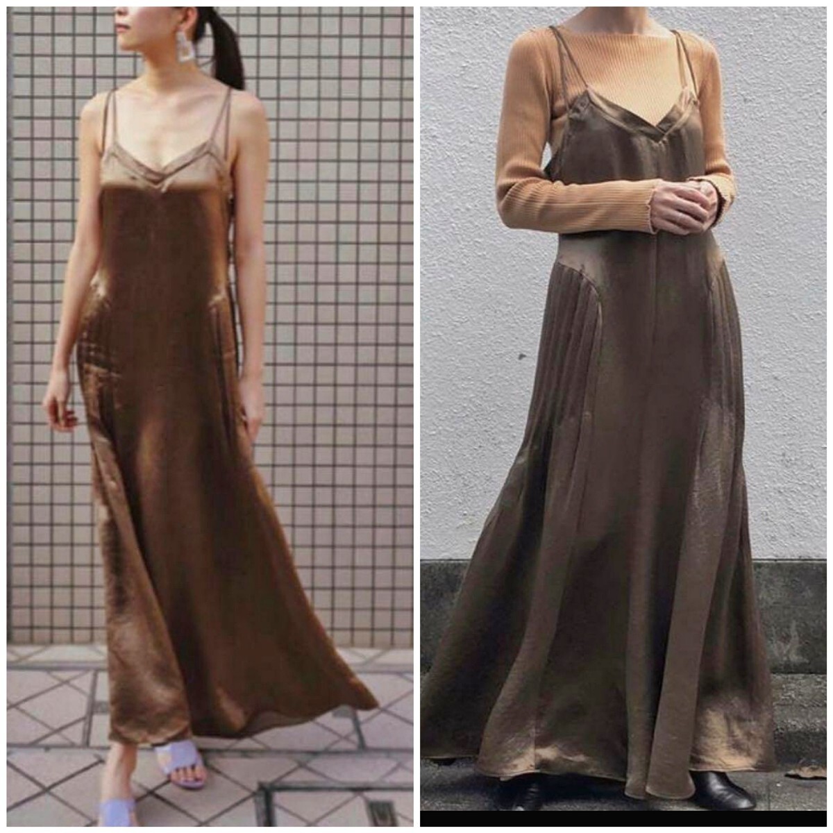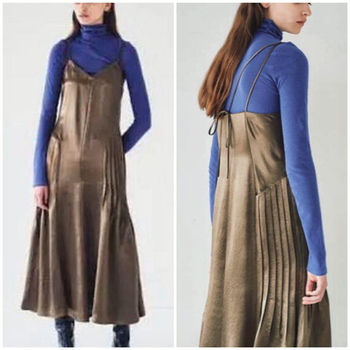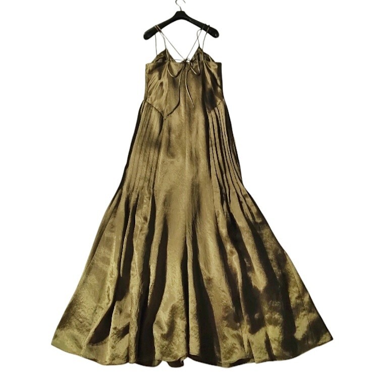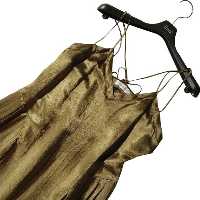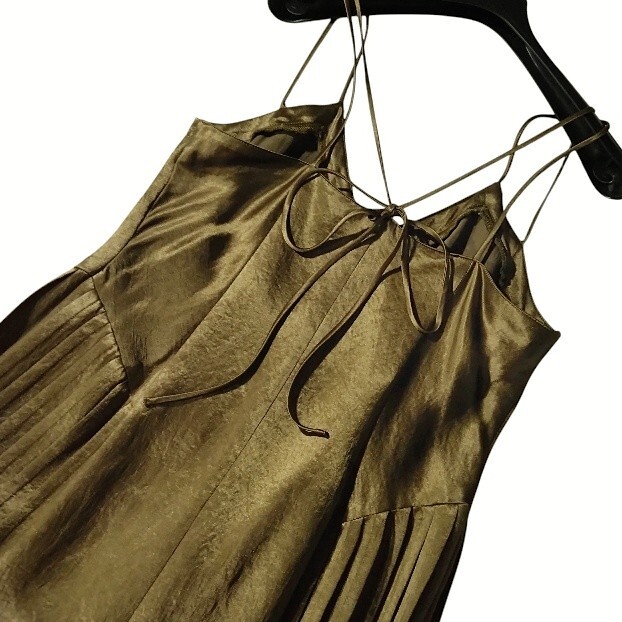 サテンのような全体的に光沢感ある生地のキャミソールワンピースです