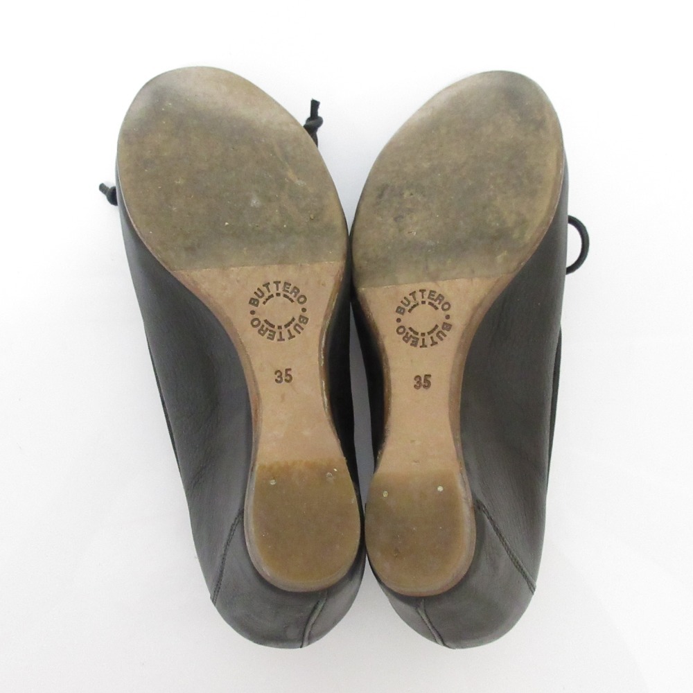 良品 BUTTERO ブッテロ レザー リボンモチーフ インヒール パンプス サイズ35 約22cm ブラック