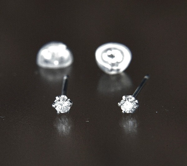 ◆宝石材質:天然ダイヤモンド 計0.10ct I-1~I-2 I-Mカラー前後 直径=約2.2mm ◆本体材質:Pt900 ポストのサイズ=幅 0.65 mm 長さ 10.0 mm ◆キャッチ:緩みにくいシリコンタイプ |