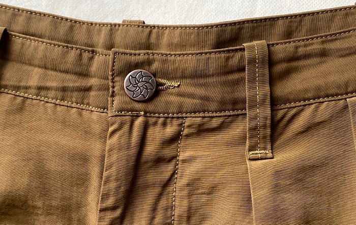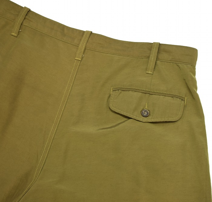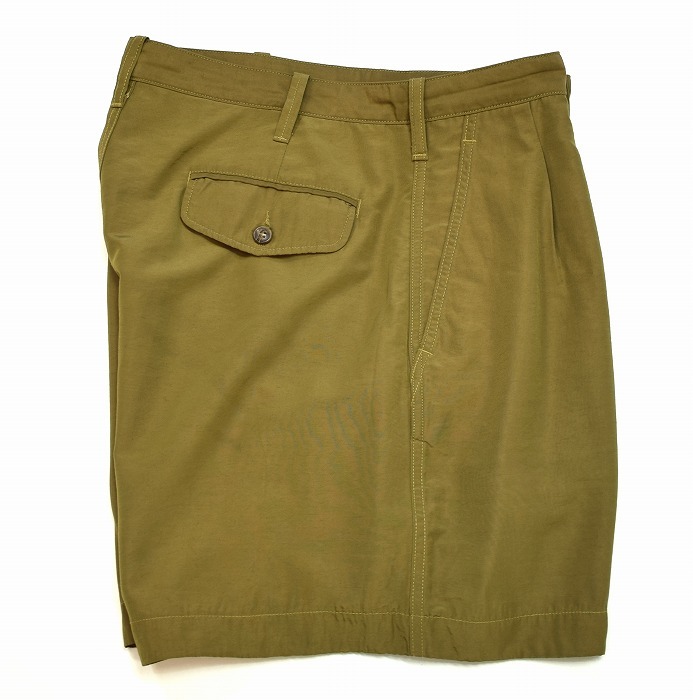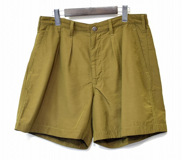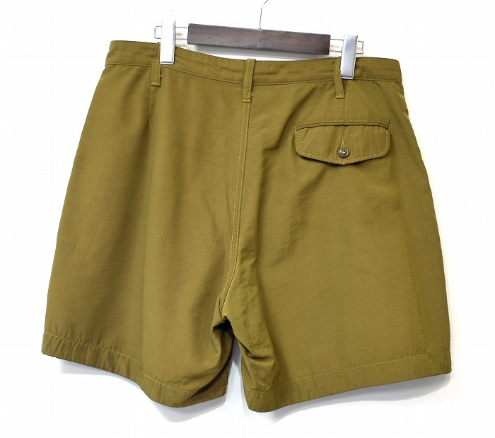 ・素材:レーヨン60%ナイロン40% ・カラー: コヨーテ ・サイズ: L 実寸(平置きにして)ウエスト 約84cm・股上 約30.5cm・股下 約15.5cm・腿幅 約36cm(多少の誤差はお許しください) ナイロンとレーヨンを交織した「Nylon rayon grosgrain」素材を使用。 弱い雨くらいは弾き、速乾性にも優れた機能的なアイテム。 経糸のナイロンフィラメント糸は生地のハリと強度、 緯糸のレーヨンスパン糸は柔らかさと肌触りのよさをそれぞれ担っています。 スラックスを思わせるツータックの入ったウエスト、 程よいリラックス感のあるワイドシルエットの膝丈ショーツ。 フロントには左右にスラッシュポケットが入り、 バックには右にフラップ付きの玉縁ポケットをそれぞれ配しています! オーセンティックなデザインながら、 速乾性のある生地と動きやすいシルエットのため、街でも山でも、アウトドアでも、真夏のアクティビティに最適な1枚です。 定価¥24200(税込) MADE IN JAPAN 使用感はありますが、目立つほどの大きな傷み汚れなし。 かなりお値打ちだと思います。この機会にぜひ! 他にもいろいろ出品しています。 管理番号: 312507Y-090441 ★ |