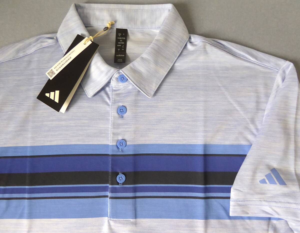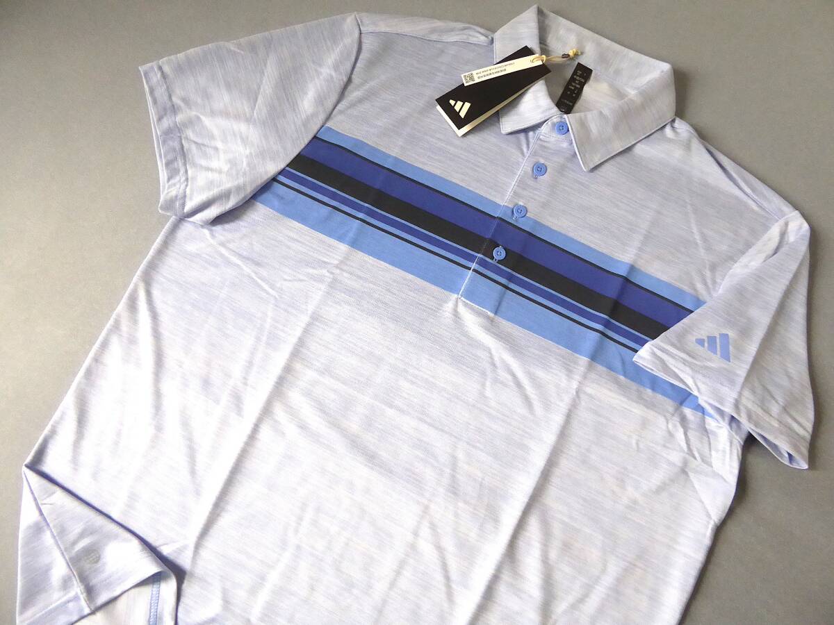 adidas GOLF アディダス ゴルフ EEW11 吸汗速乾 スリーストライプ 半袖ポロシャツ XL 薄青