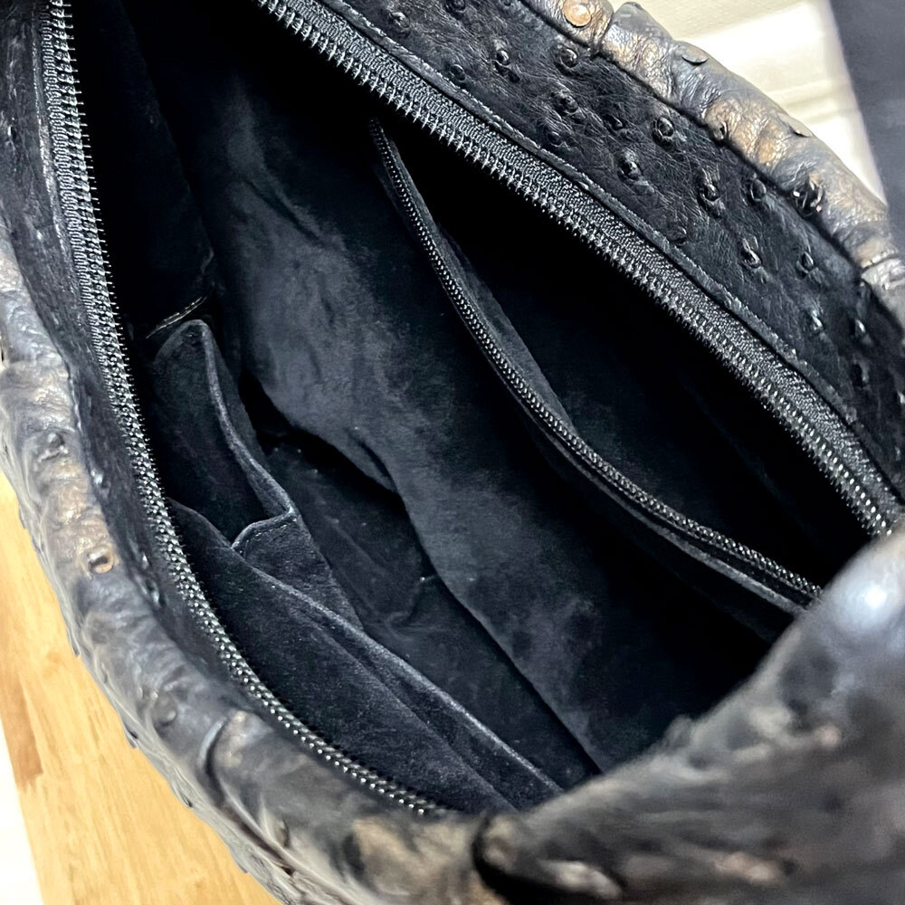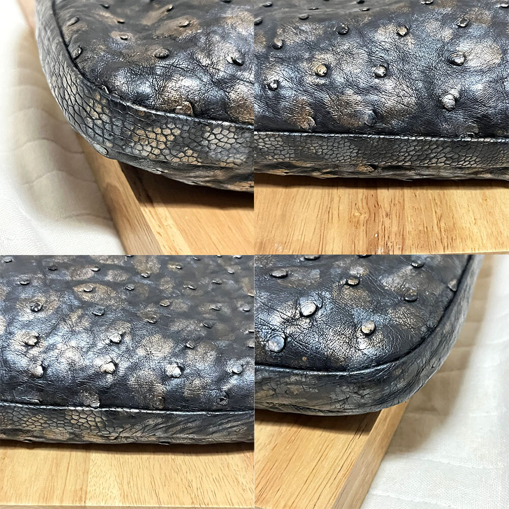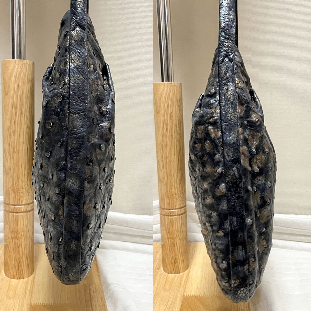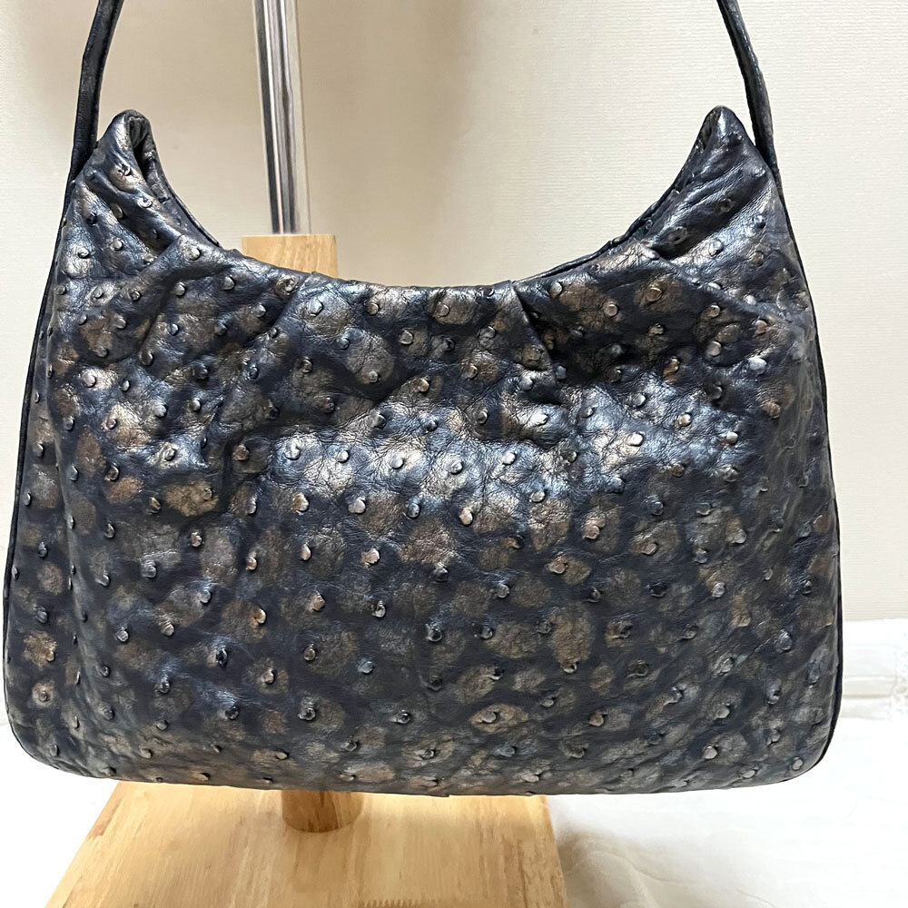 他にはない一点物の染色が施された軽くて柔らかい、丈夫なワニ革と並ぶ高級皮革、オーストリッチのトートバック ショルダーバッグです。