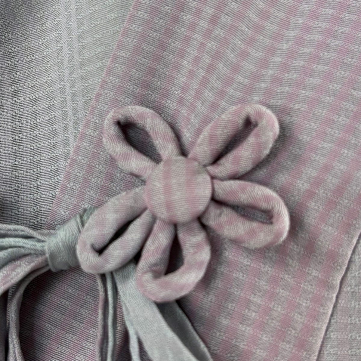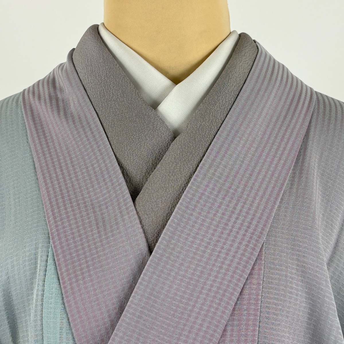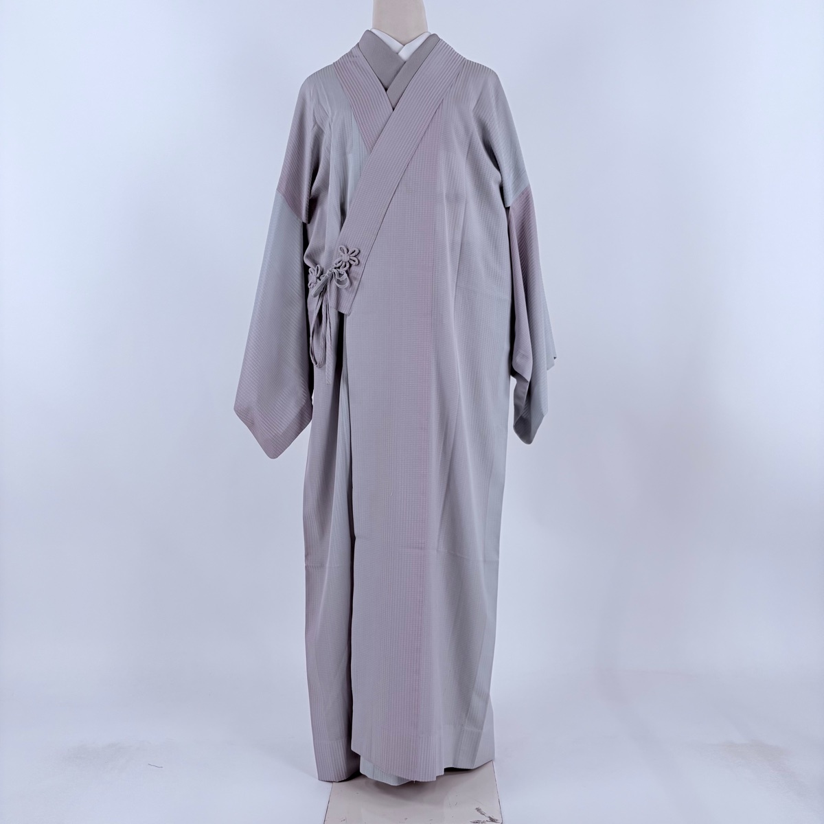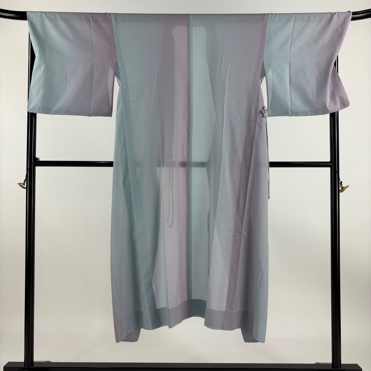 | 道中着 逸品 和装コート 着物衿 縞 ぼかし 薄紫 身丈136 裄丈69.5 L 正絹 【中古】 |