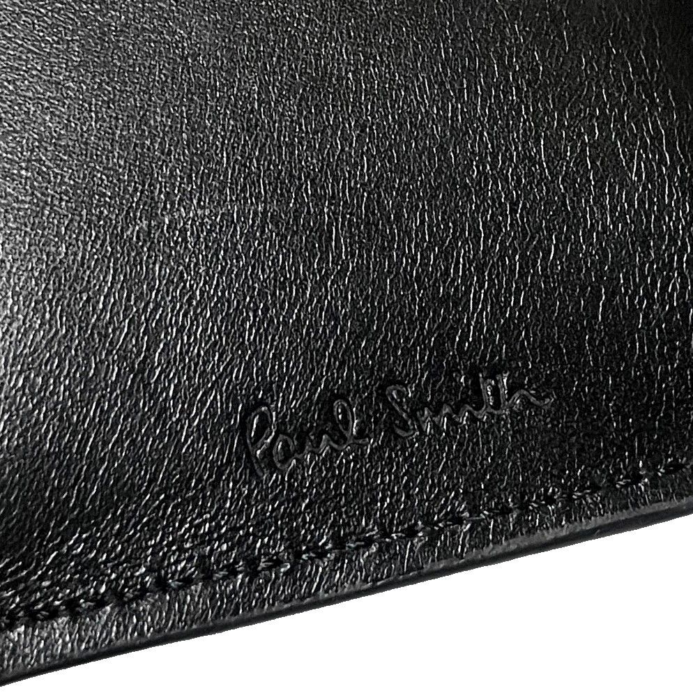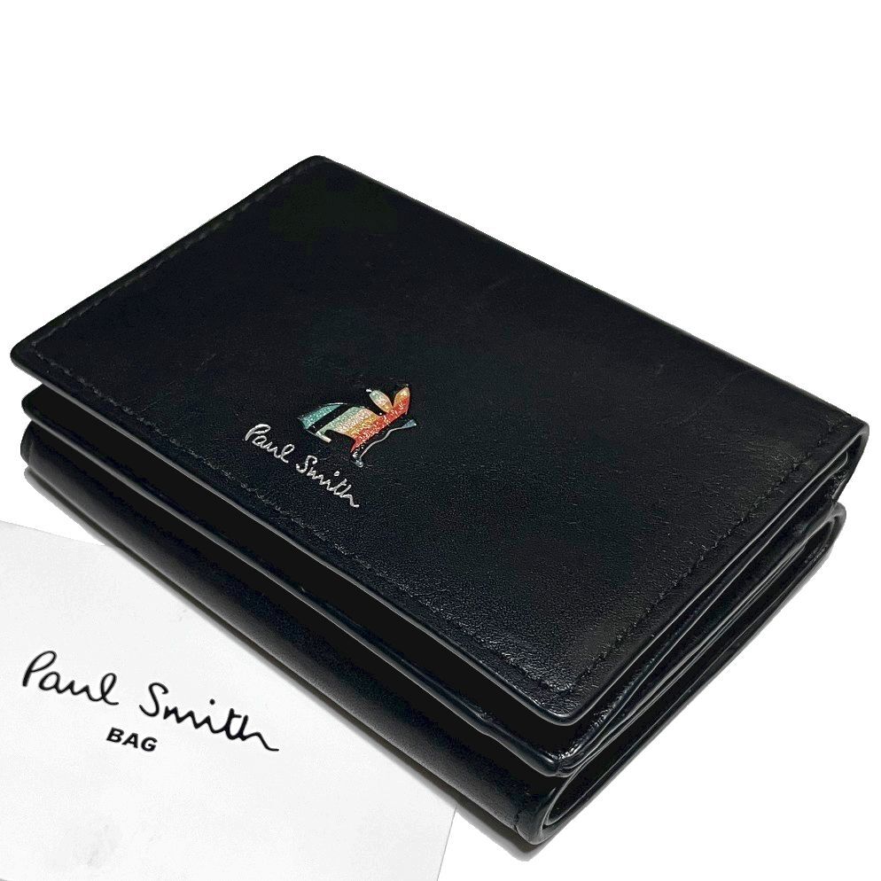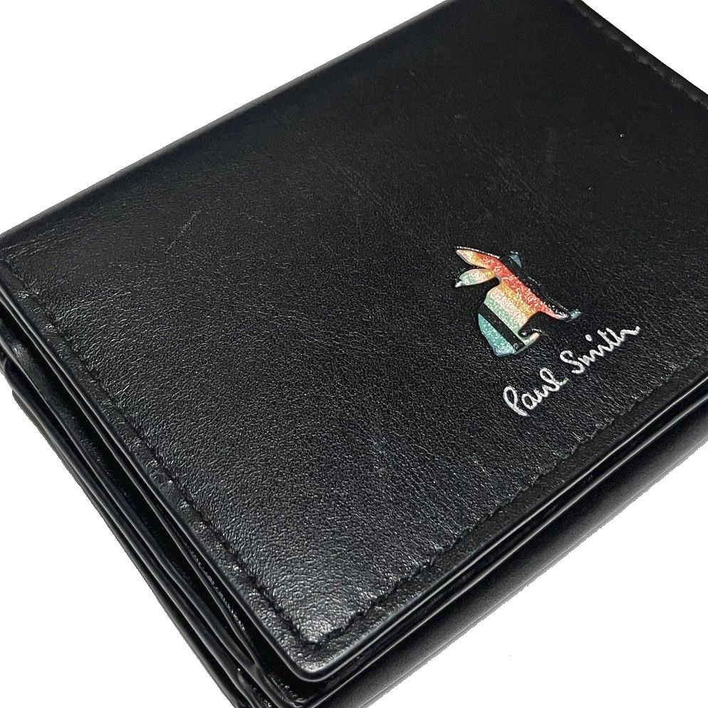 未使用 Paul Smith ポール スミス マーケトリーストライプ ラビット レザー 三つ折り 財布 ブラック 牛革 定価23,100円