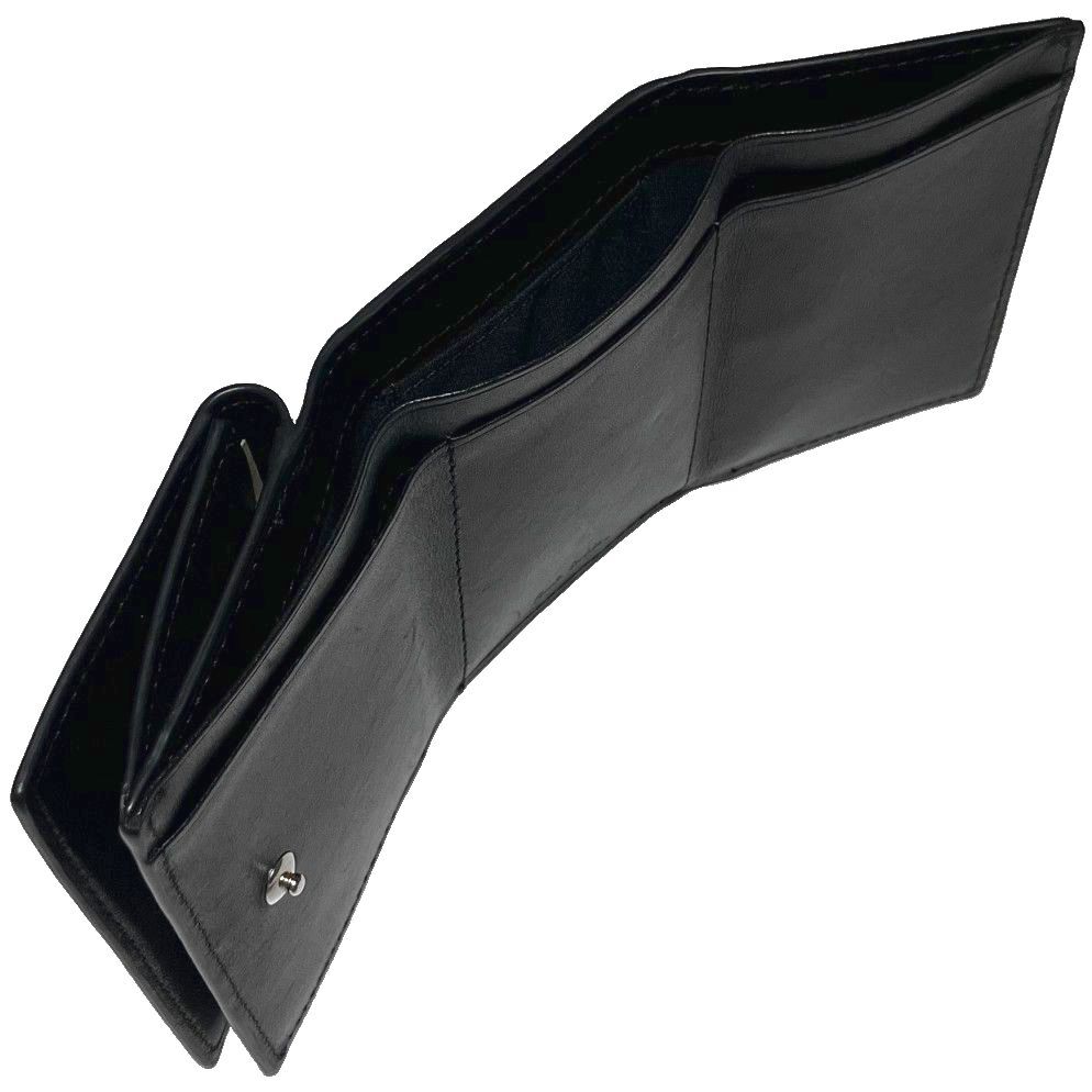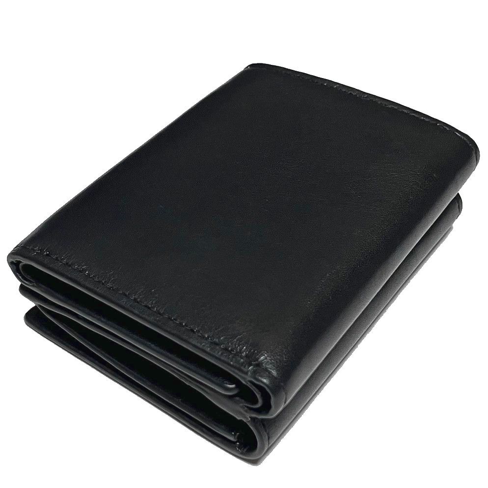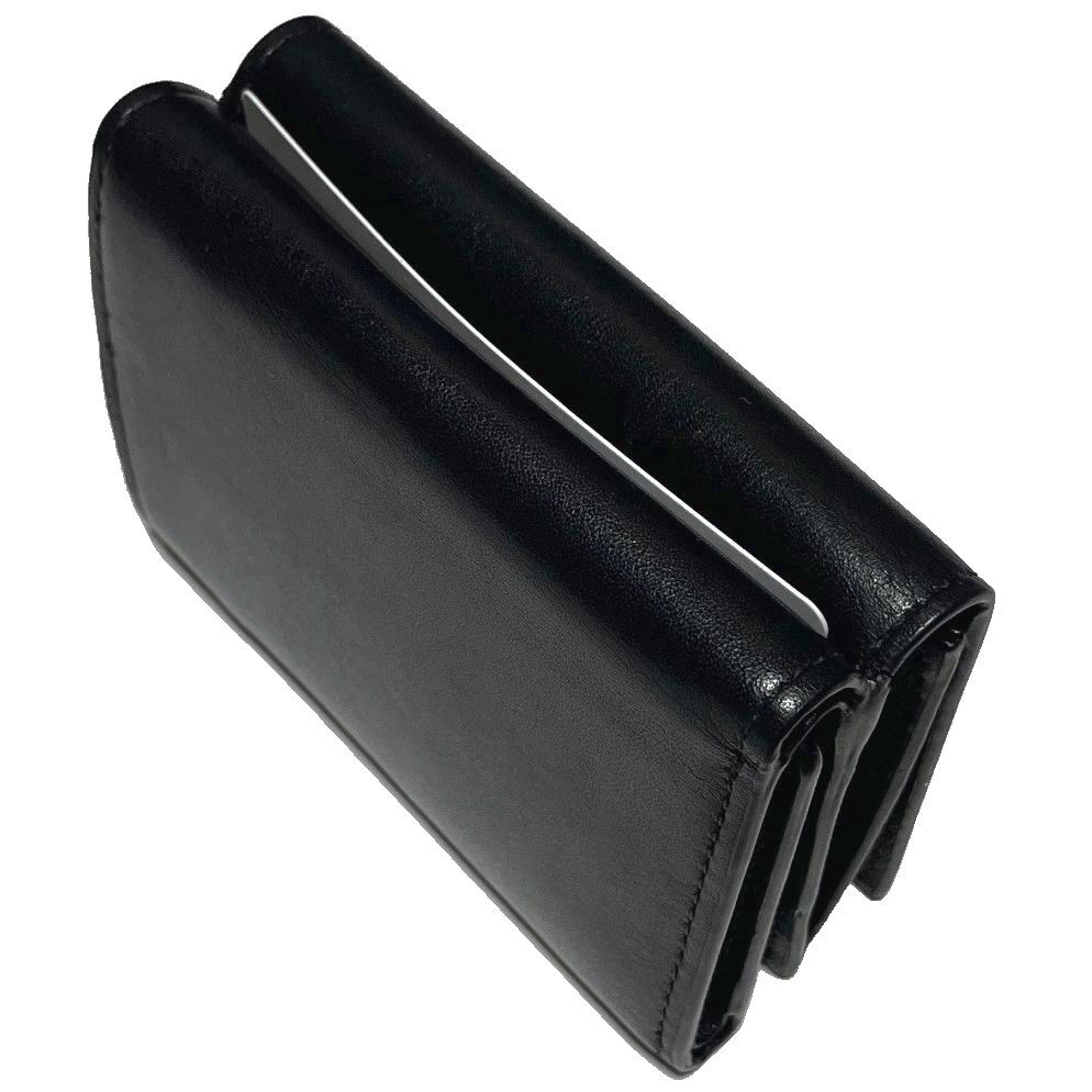 ソフトでしなやかなイタリアンレザーを使用し、札入れ・カード入れの三つ折り仕様と両マチフラップボタン留め小銭入れを組合せたコンパクトな財布。