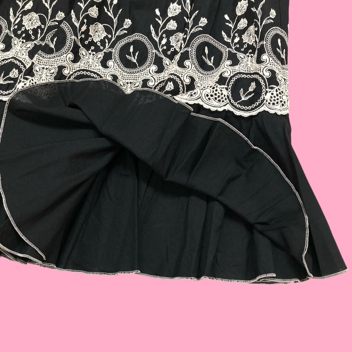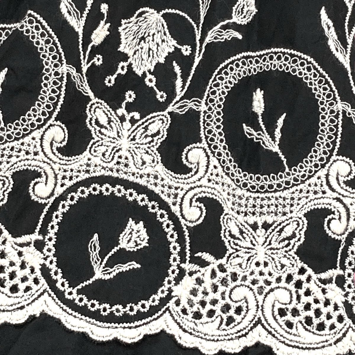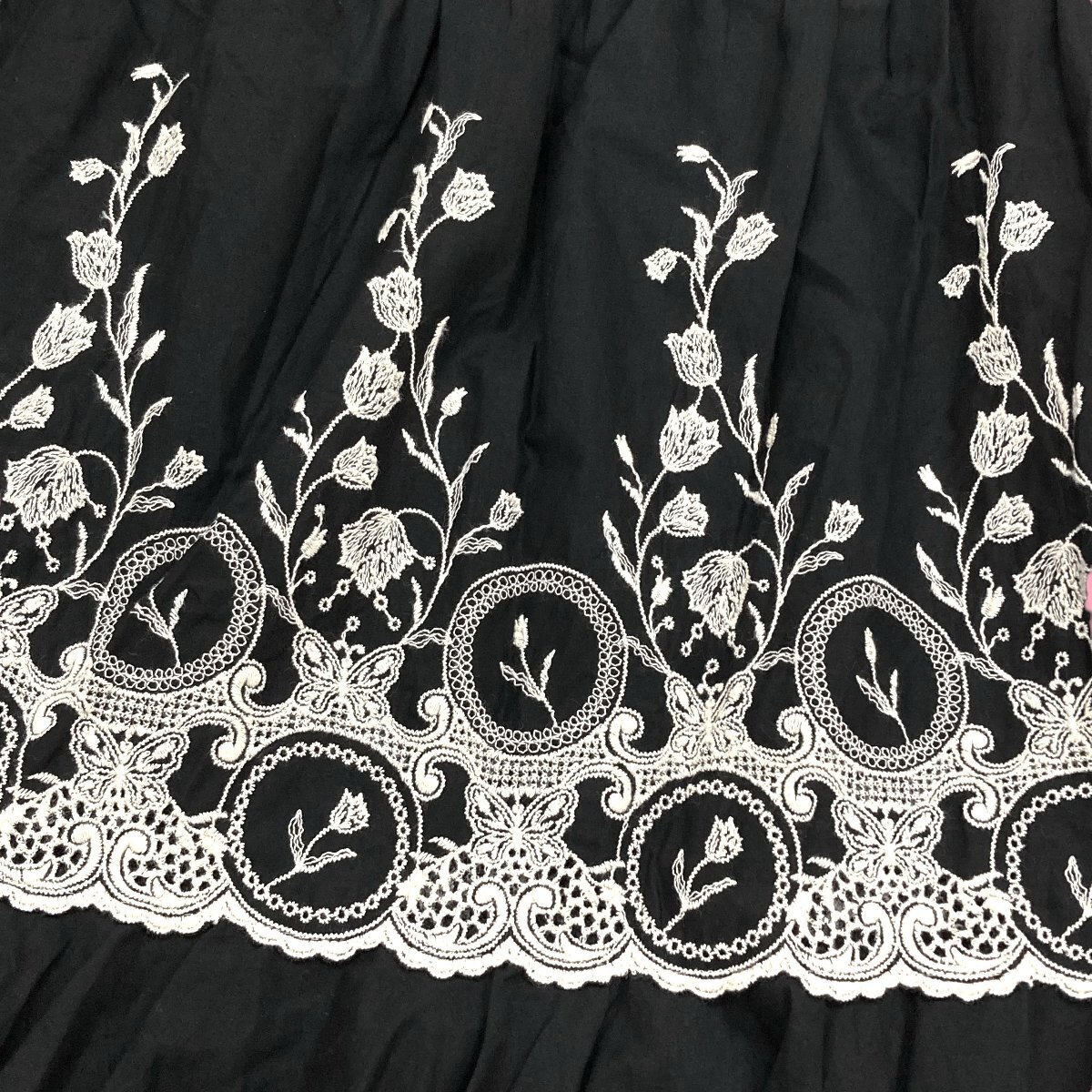 極美品 PINK HOUSE/ピンクハウス フリル使い花柄刺繍フレアスカート 黒 sc607